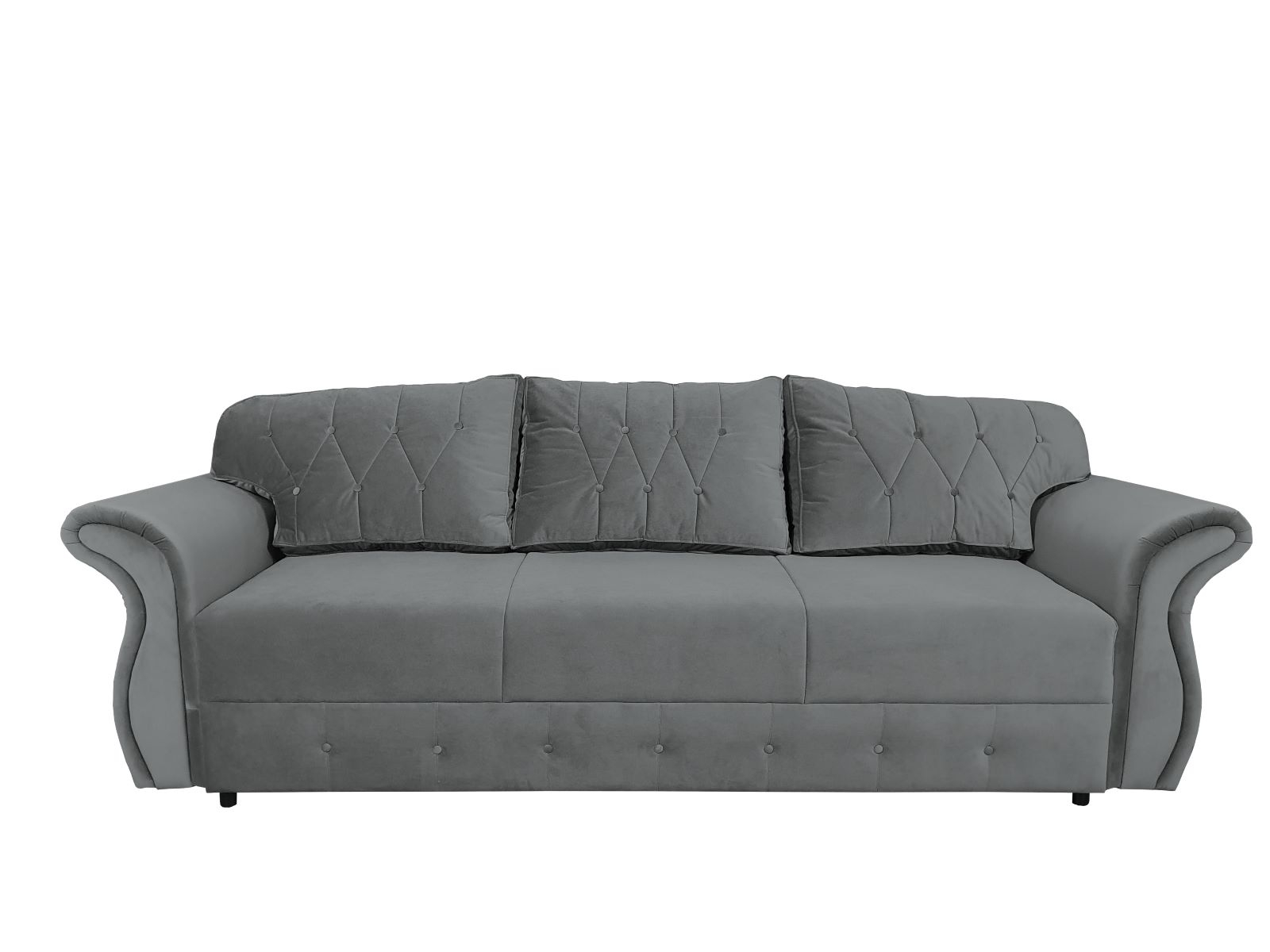 Canapeaua cu 3 locuri Mira reprezinta cu succes modelul clasic de canapea. Pernele umplute cu vata siliconica, prezinta tapiterie cu butoni imbracati in stofa. Forma bratelor este una dintre cele mai frumoase, iar mestesugul de a le lucra fac din acest produs unul fara varsta si extrem de special.Canapeaua are sezutul si spatarul din plasa de arcuri si burete ceea ce o recomanda si pentru folosirea ei seara de seara. Structura este din lemn masiv, pal tapitata integral in catifea. Se poate executa si pe alte culori.