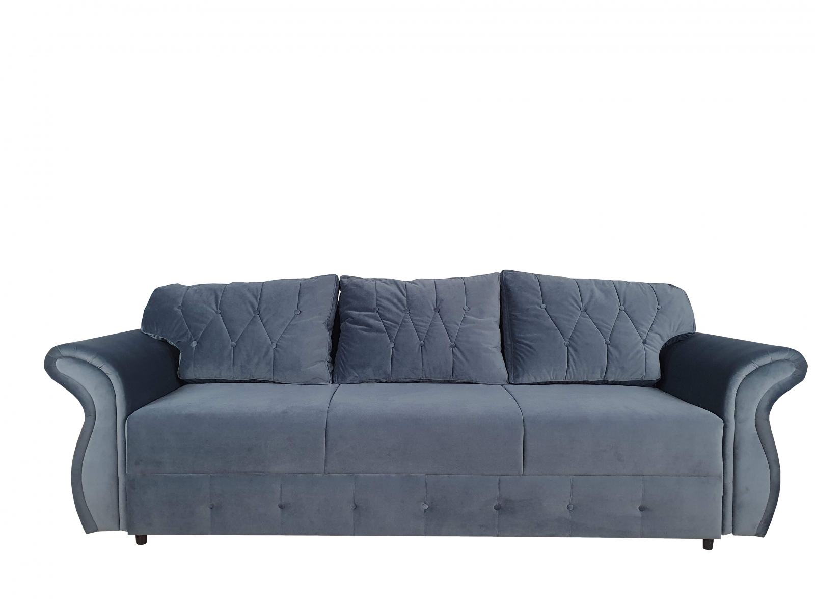 Canapeaua cu 3 locuri Mira reprezinta cu succes modelul clasic de canapea. Pernele umplute cu vata siliconica, prezinta tapiterie cu butoni imbracati in stofa. Forma bratelor este una dintre cele mai frumoase, iar mestesugul de a le lucra fac din acest produs unul fara varsta si extrem de special.Canapeaua are sezutul si spatarul din plasa de arcuri si burete ceea ce o recomanda si pentru folosirea ei seara de seara. Structura este din lemn masiv, pal tapitata integral in catifea. Se poate executa si pe alte culori.