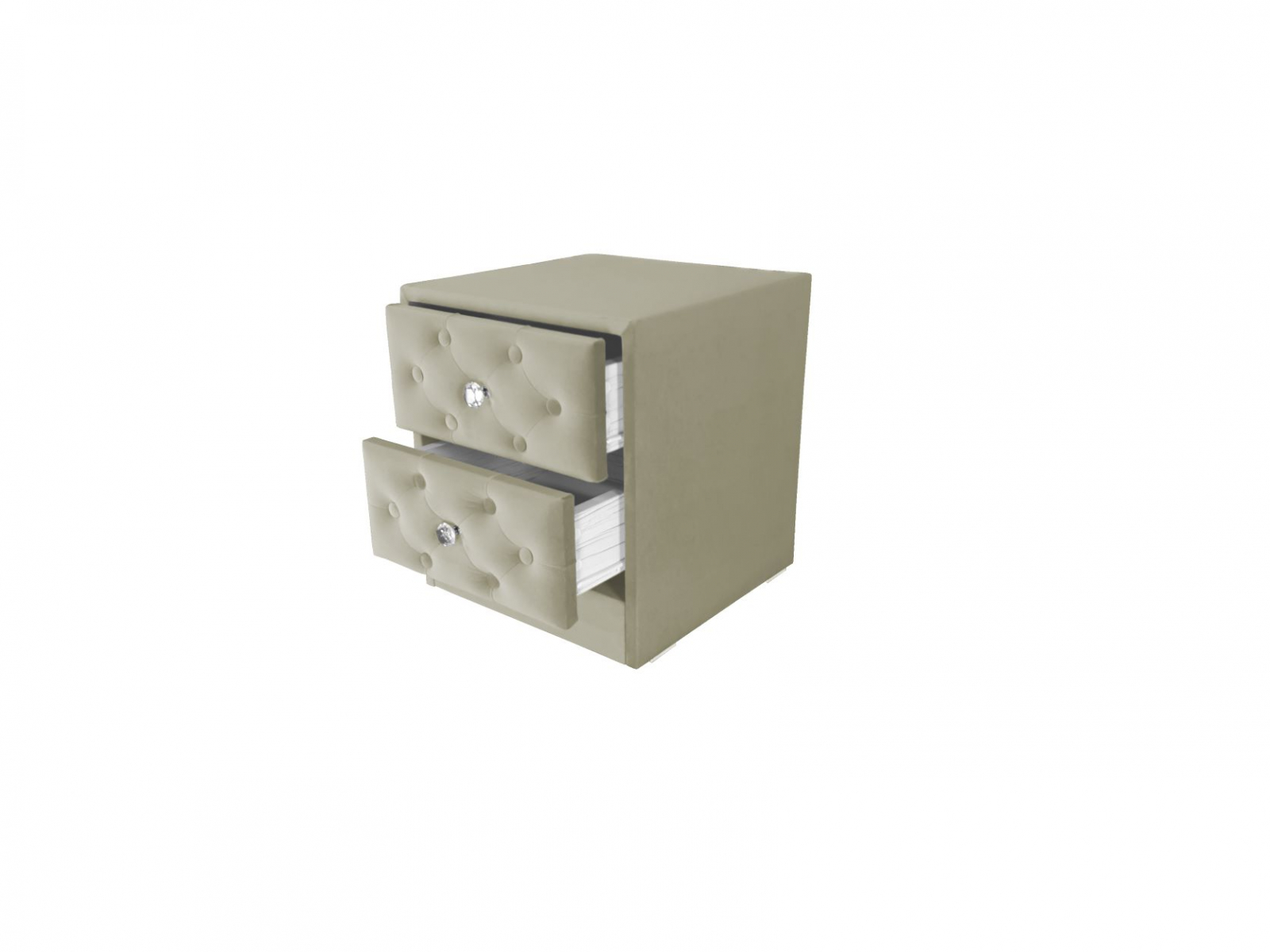 Noptiera este realizata  din catifea  si pal , are sertare  care glisează ușor, oferind spațiu suficient pentru păstrarea unor articole mai mici organizate și la îndemână.