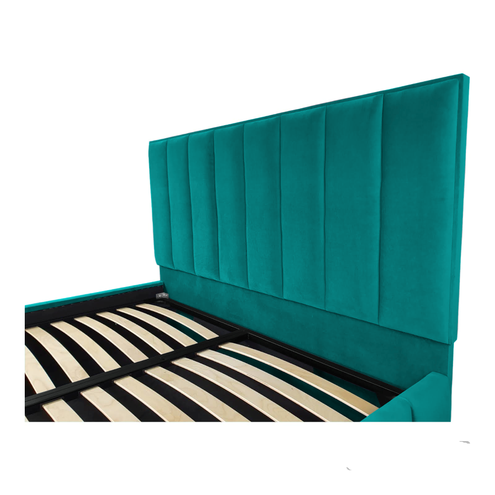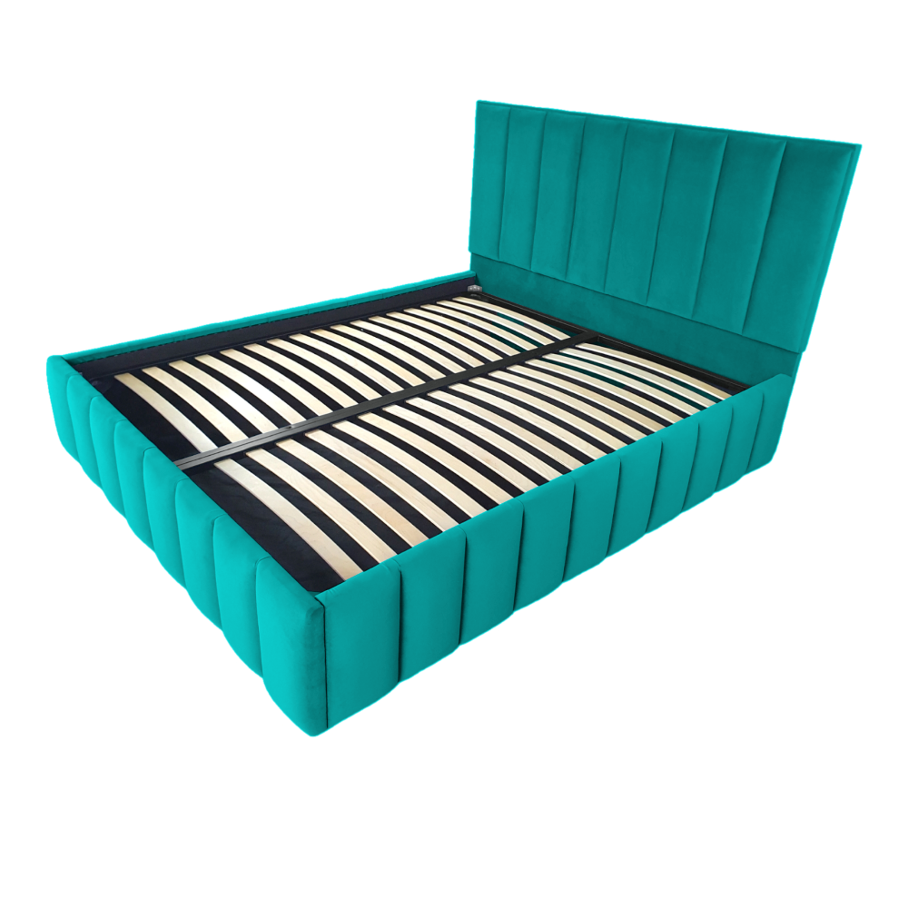 Pat tapitat Atena Select ,120x200cm,somiera metalica rabatabila,spatiu depozitare,turcoaz