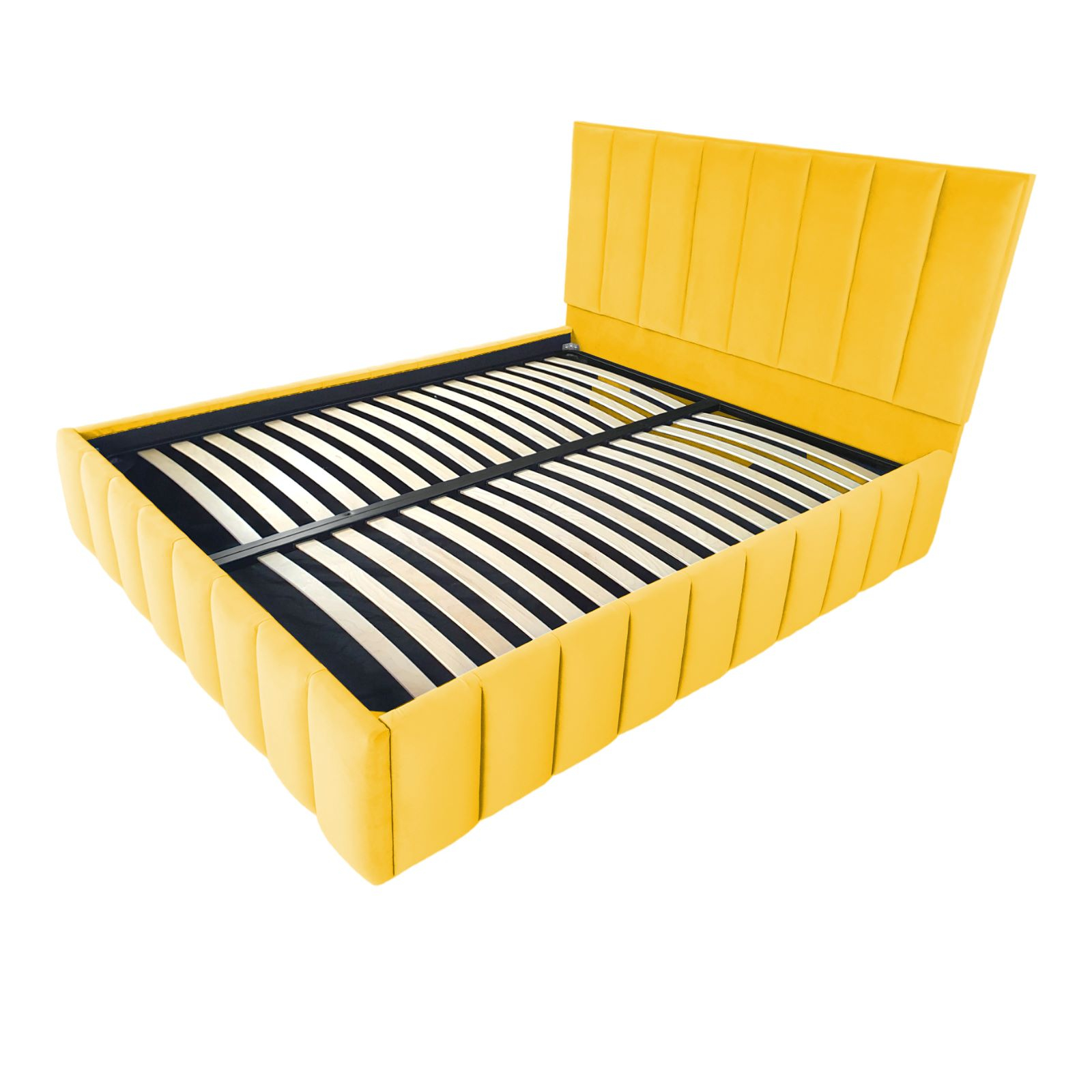 Pat tapitat Atena Select ,120x200cm,somiera metalica rabatabila,spatiu depozitare,galben