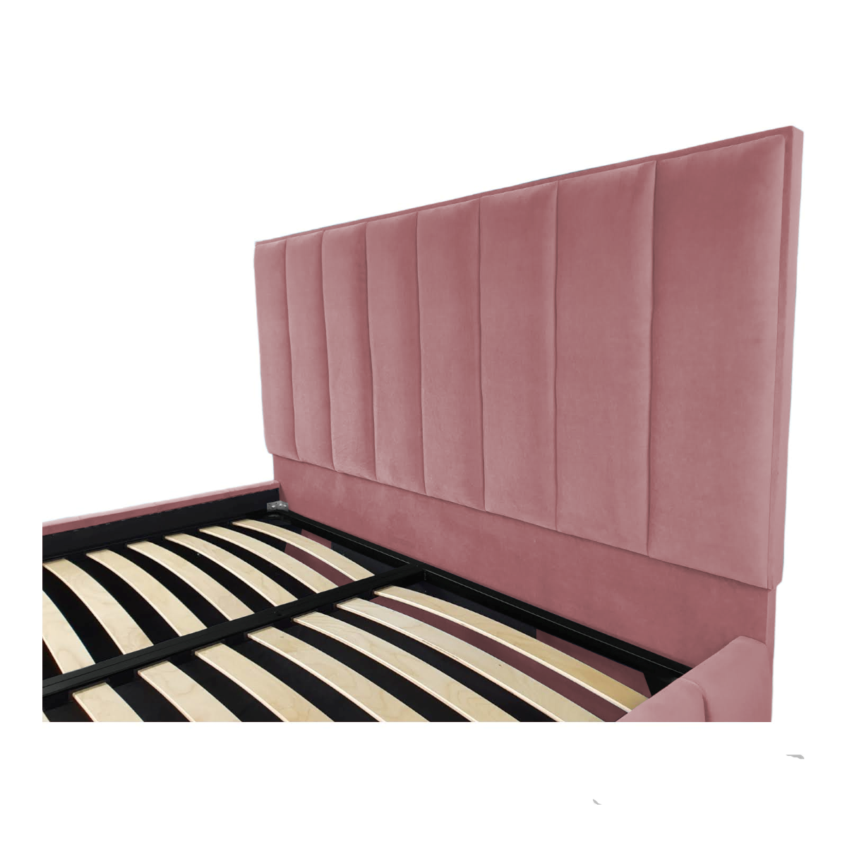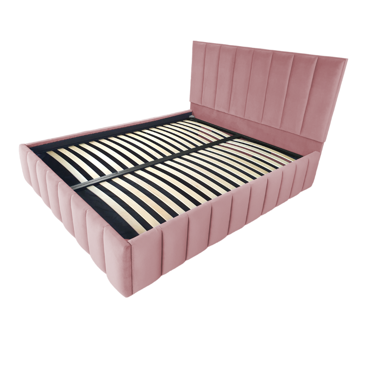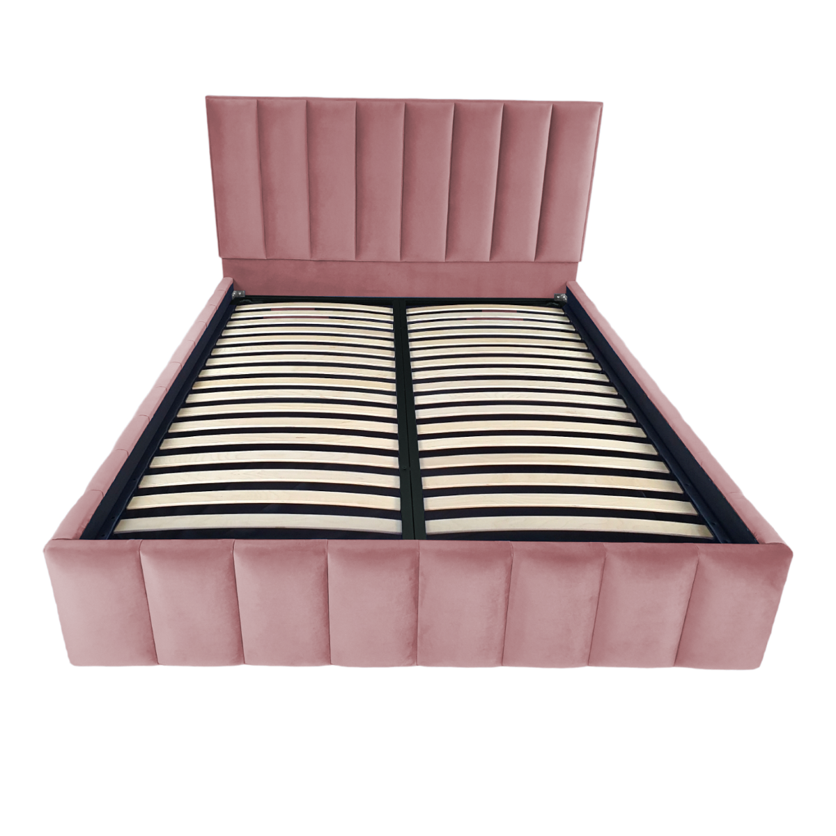 Pat tapitat Atena Select ,120x200cm,somiera metalica rabatabila,spatiu depozitare,roz