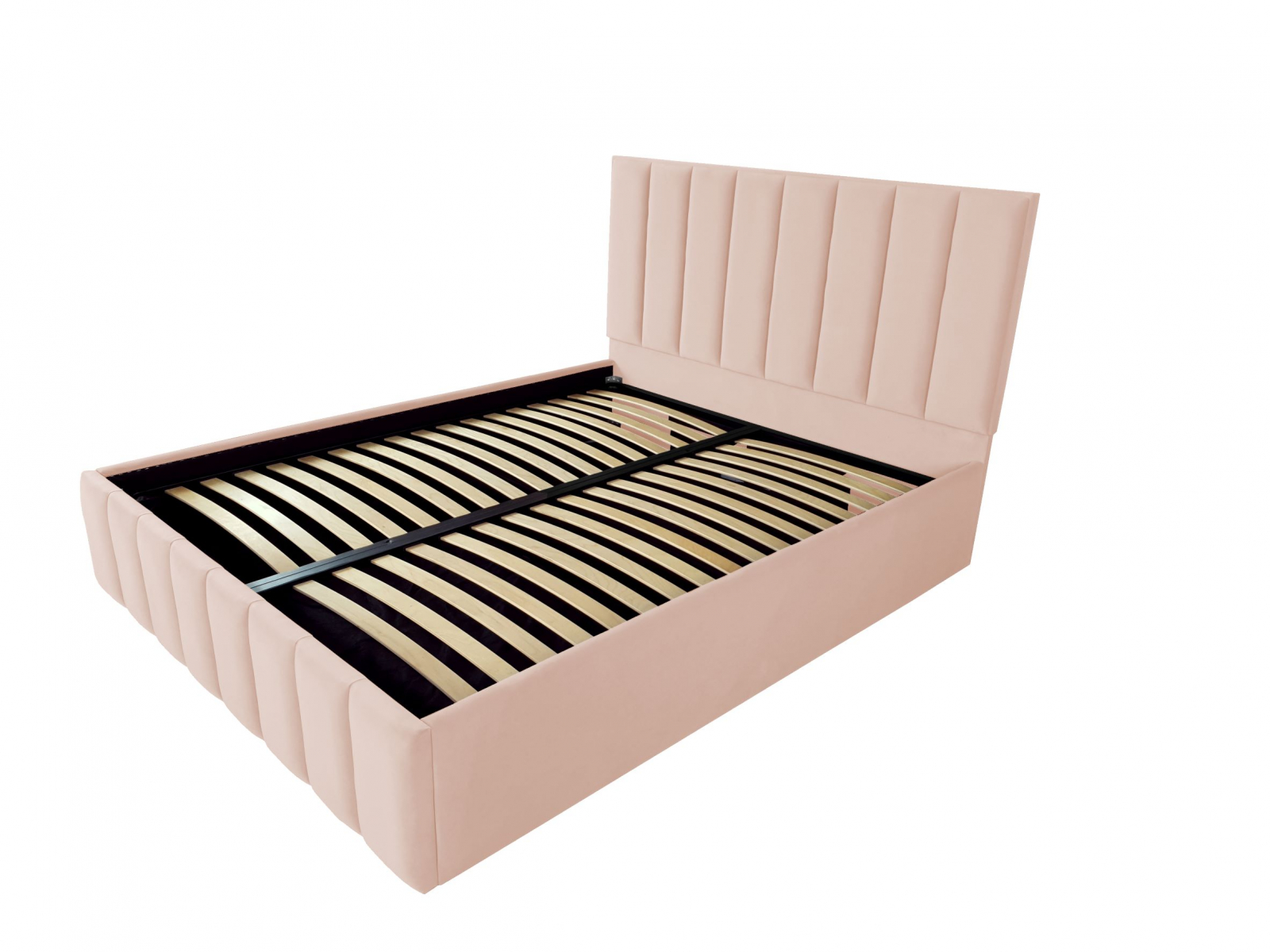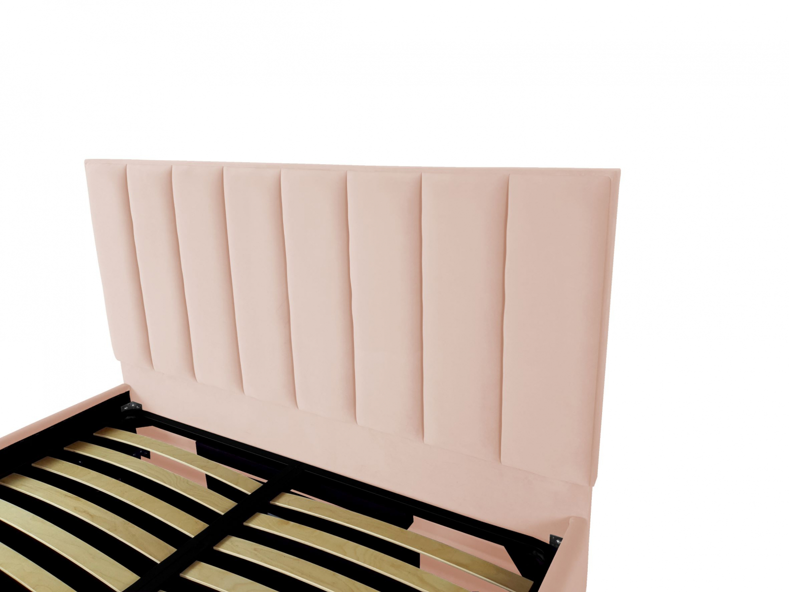 Pat tapitat Atena ,120x200cm,somiera metalica rabatabila,spatiu depozitare,roz pal