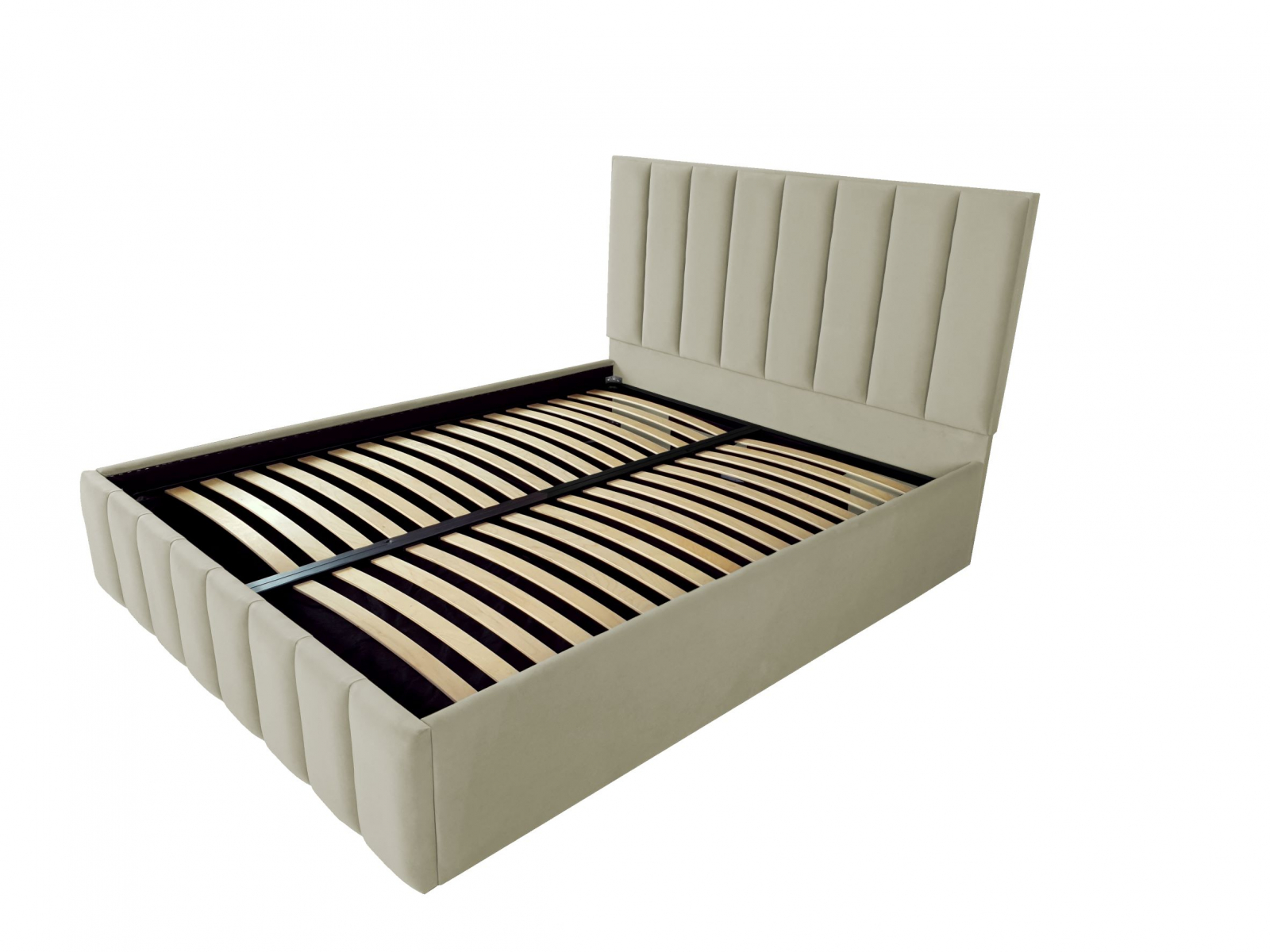Pat tapitat Atena ,140x200cm,somiera metalica rabatabila,spatiu depozitare,bej nisip