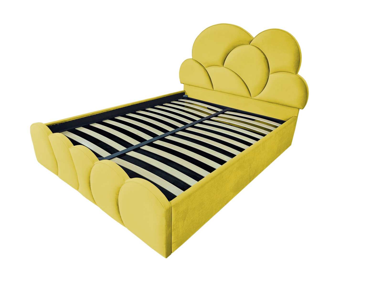 Pat tapitat Bliss ,120x200cm,somiera metalica rabatabila,spatiu depozitare,mustar