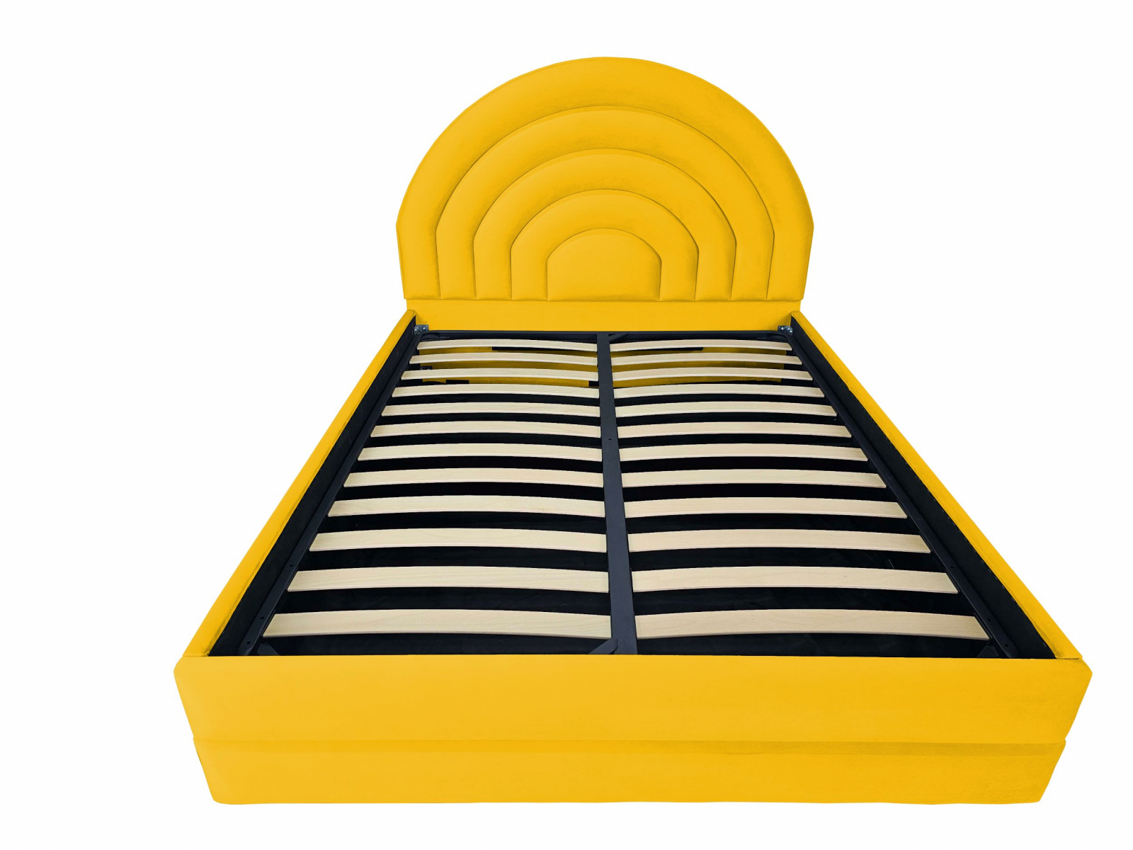 Pat tapitat Dome ,120x200cm,somiera metalica rabatabila,spatiu depozitare,galben