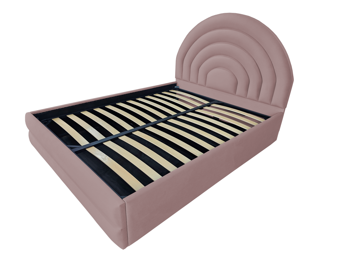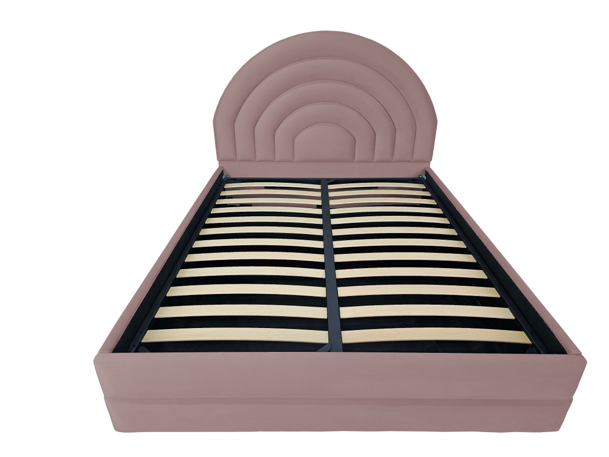 Pat tapitat Dome ,120x200cm,somiera metalica rabatabila,spatiu depozitare,roz prafuit