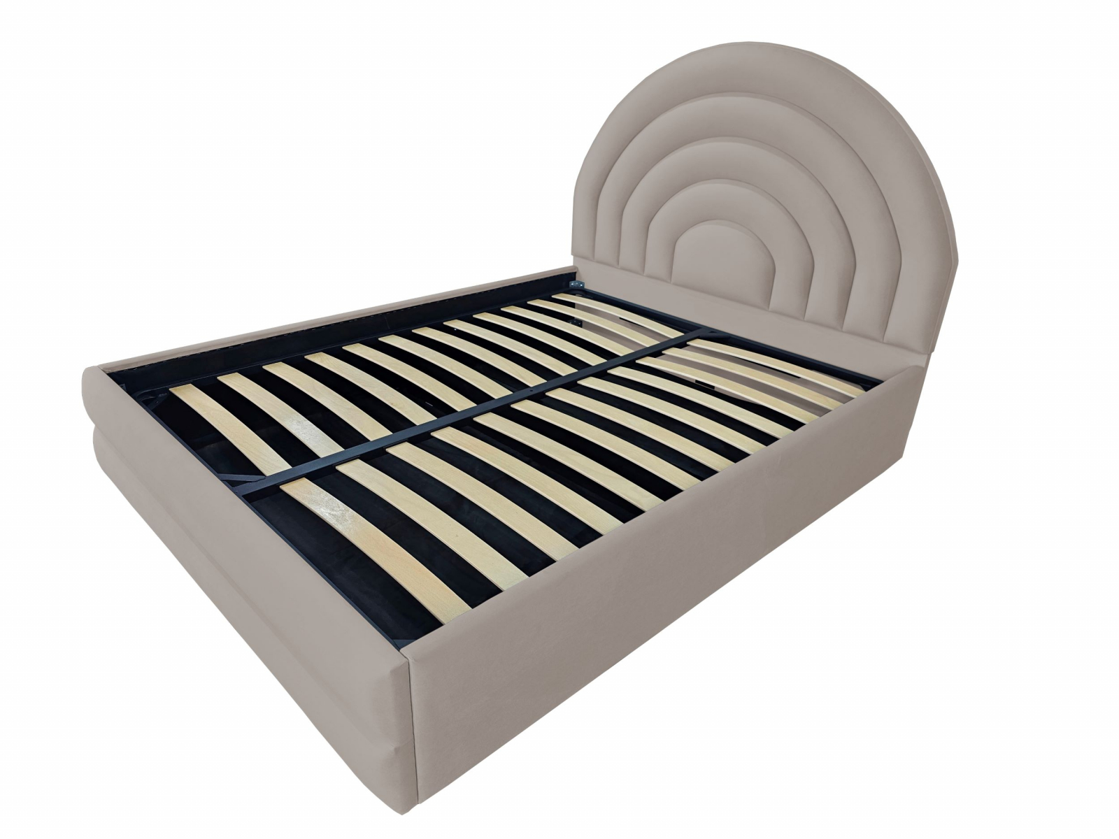 Pat tapitat Dome ,120x200cm,somiera metalica rabatabila,spatiu depozitare,capucino