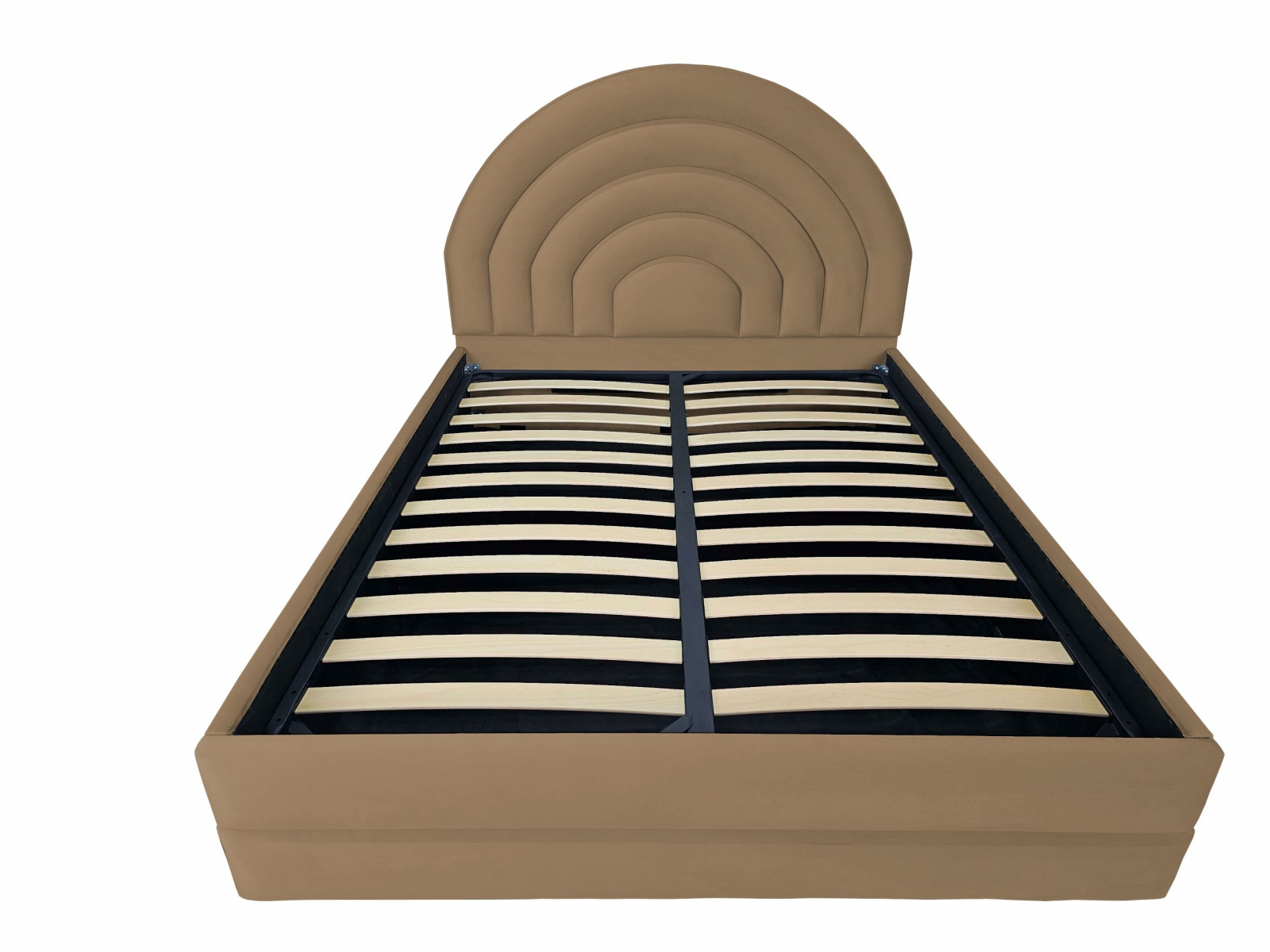 Pat tapitat Dome ,180x200cm,somiera metalica rabatabila,spatiu depozitare,cafeniu