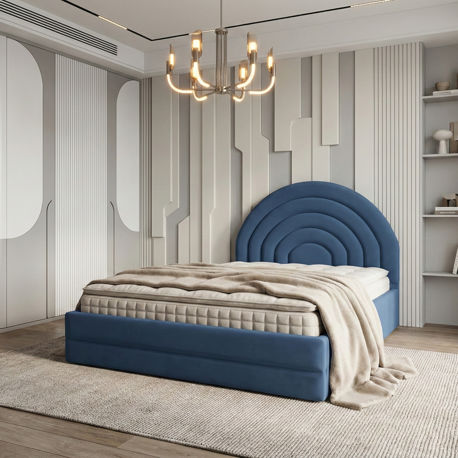 Patul Dome are o estetică modernă, caracterizată prin liniile sale curate și designul minimalist. Tăblia prezintă o serie de modele concentrice, gradate, în semicerc, care adaugă un element decorativ siluetei de altfel simplă.Designul general al patului este simplu, dar elegant, sugerând un stil contemporan.
