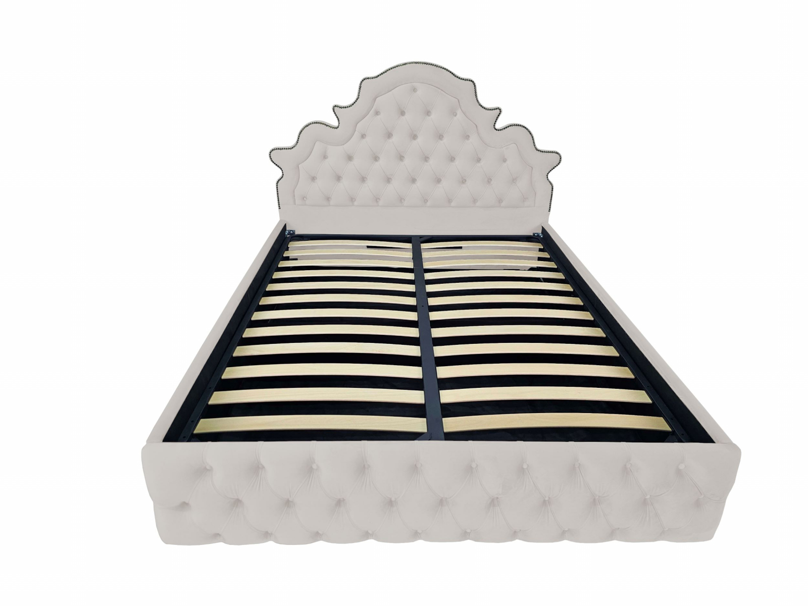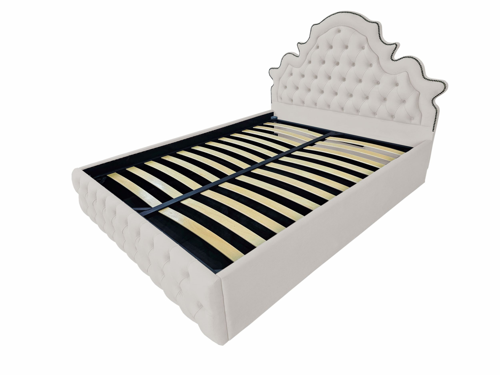 Pat tapitat Elise ,120x200cm,somiera metalica rabatabila,spatiu depozitare,crem prafuit