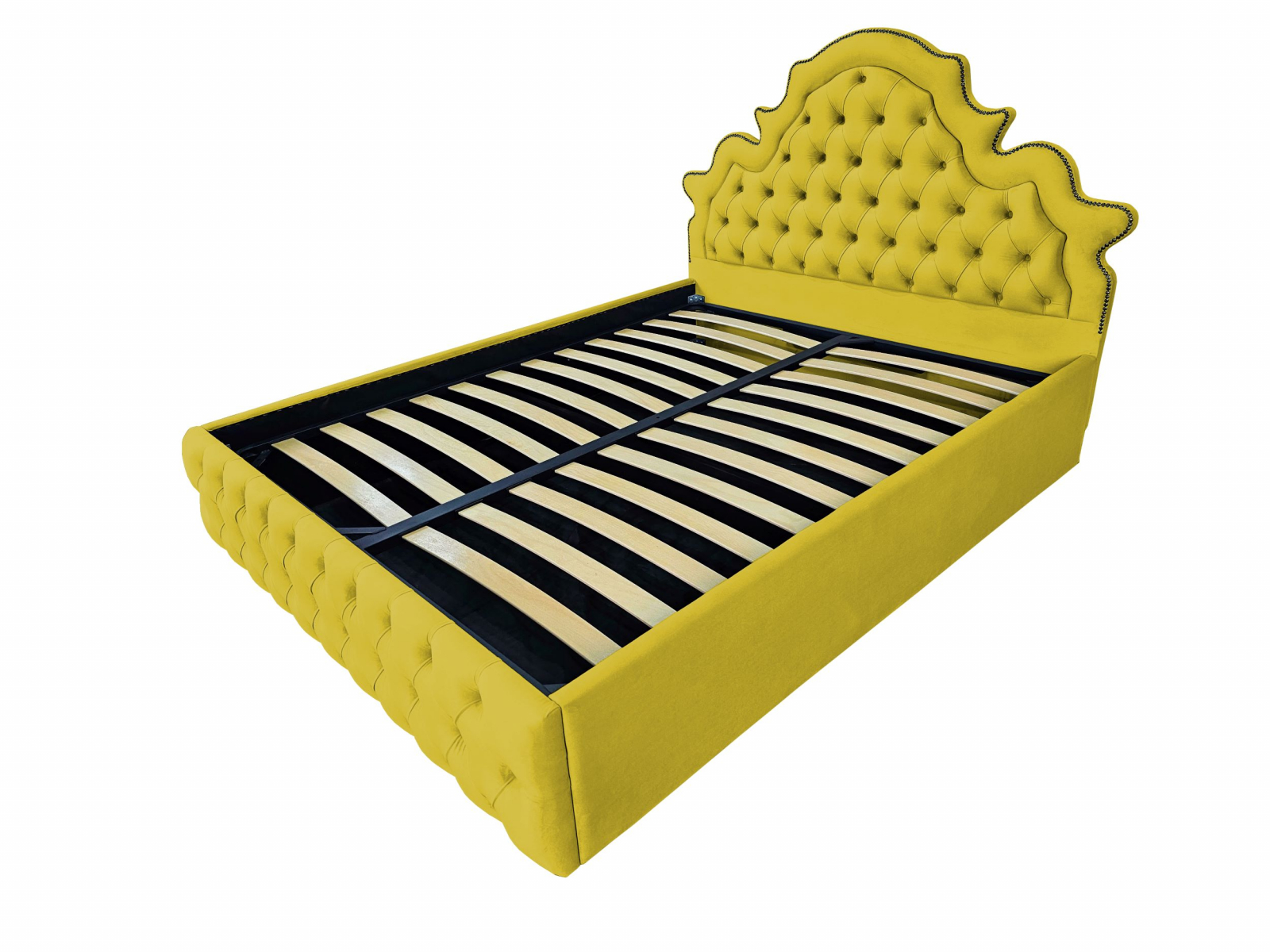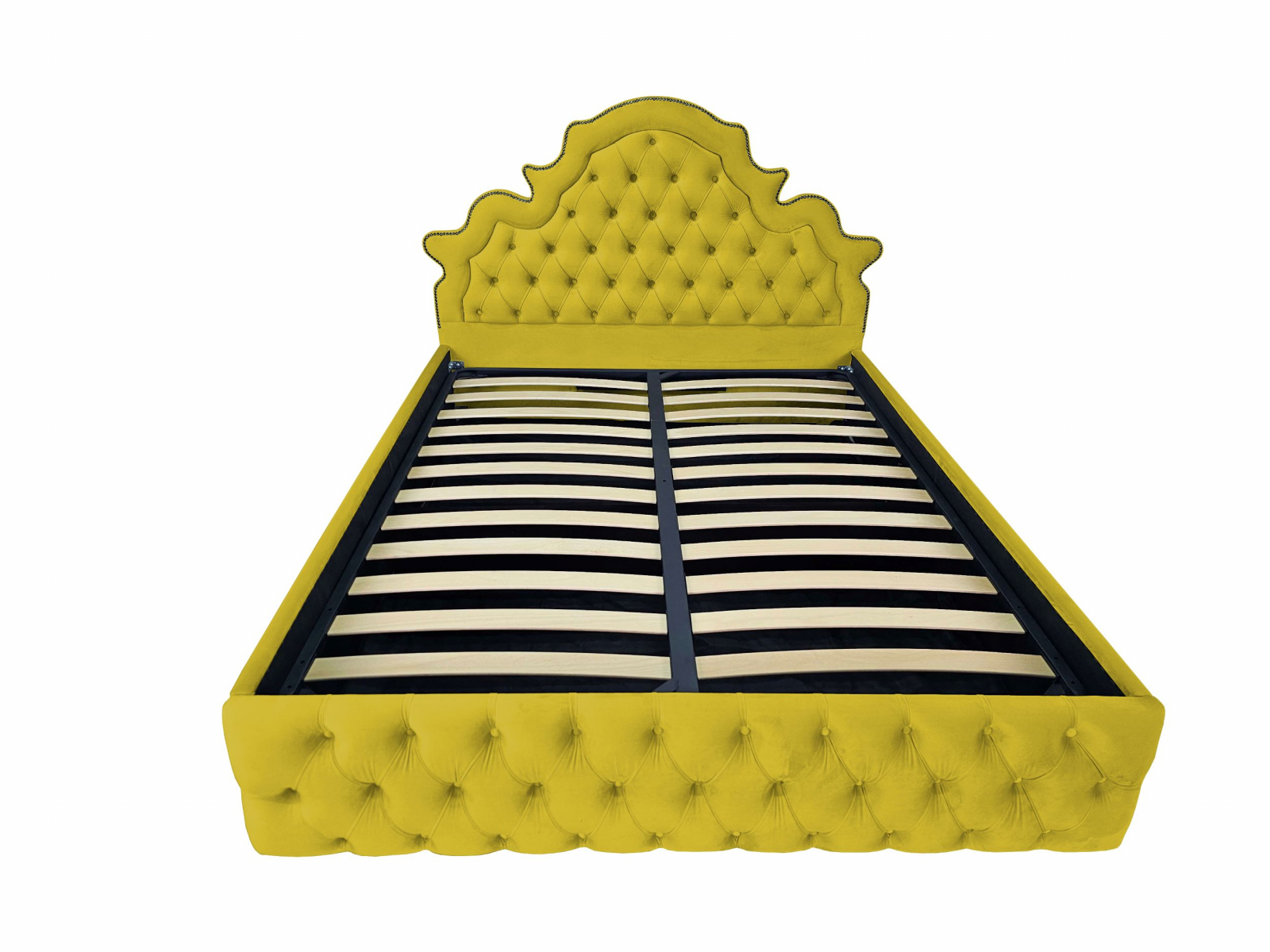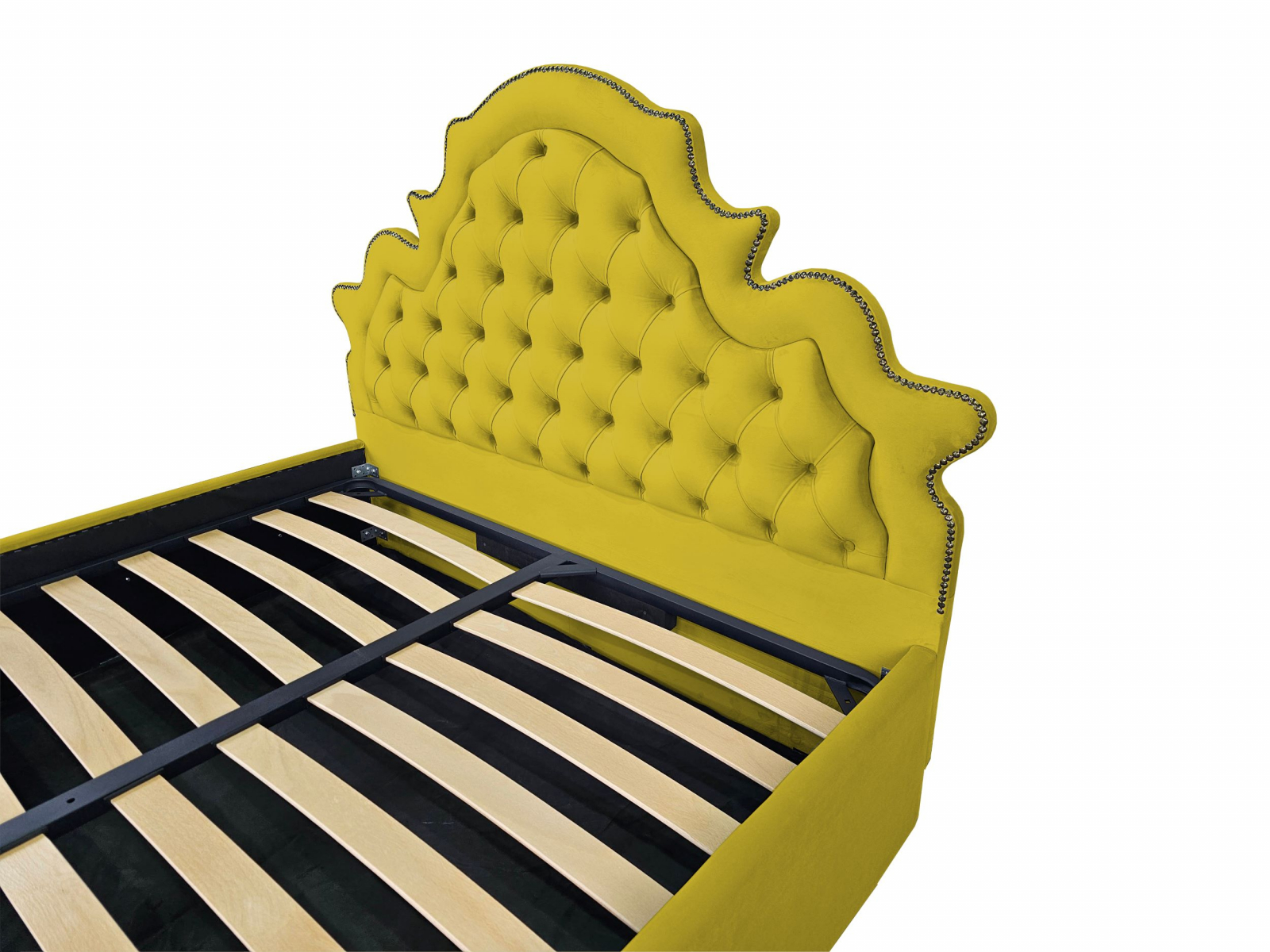 Pat tapitat Elise ,120x200cm,somiera metalica rabatabila,spatiu depozitare,mustar