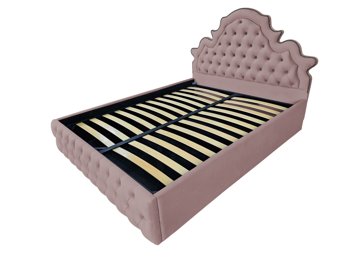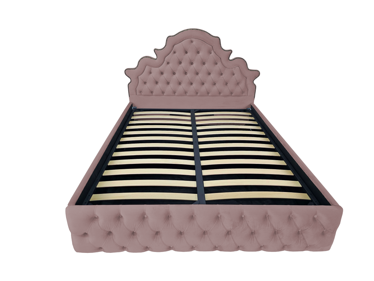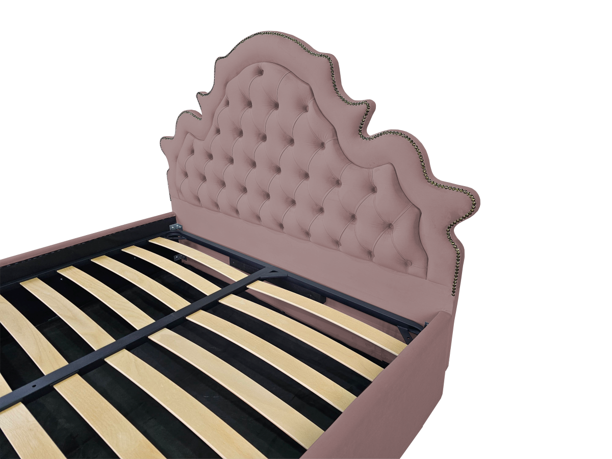 Pat tapitat Elise ,120x200cm,somiera metalica rabatabila,spatiu depozitare,roz prafuit