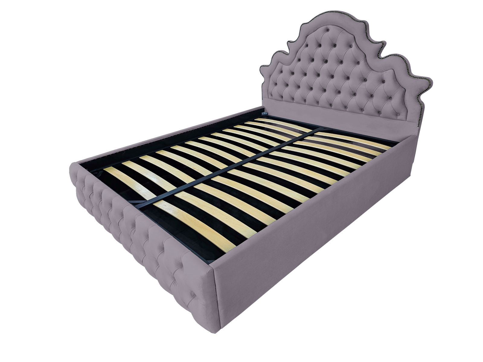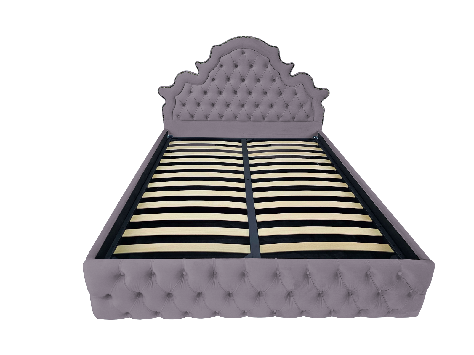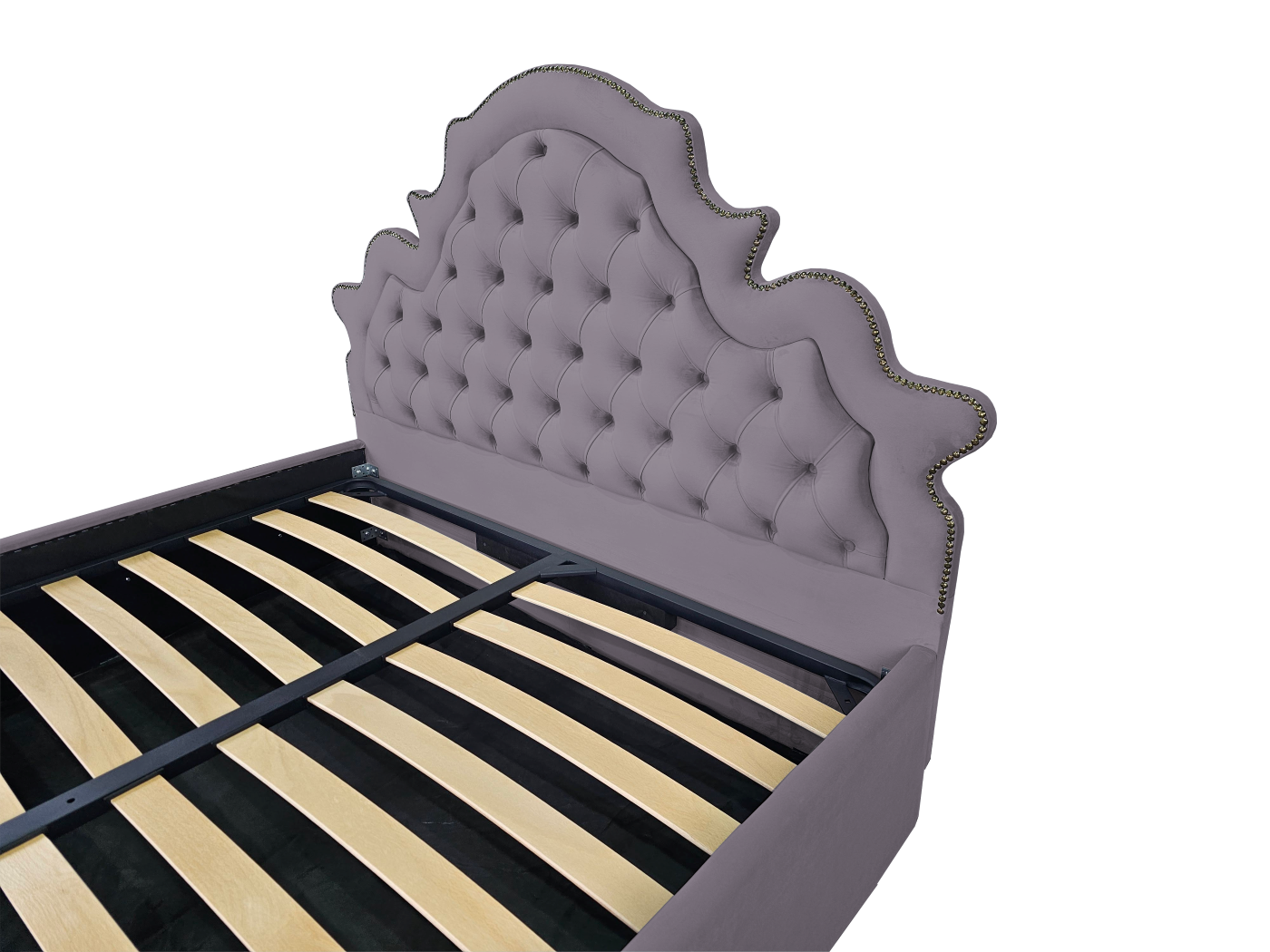Pat tapitat Elise ,120x200cm,somiera metalica rabatabila,spatiu depozitare,lila