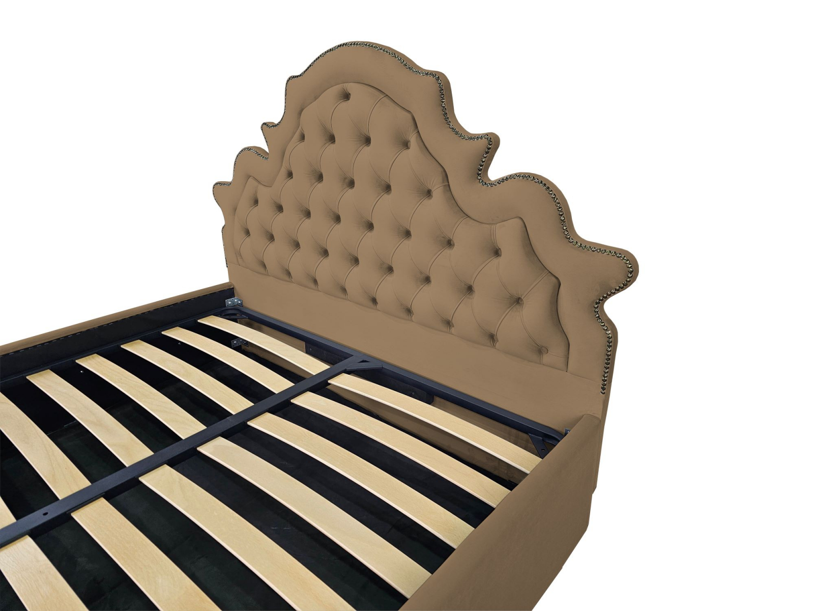 Pat tapitat Elise ,180x200cm,somiera metalica rabatabila,spatiu depozitare,cafeniu