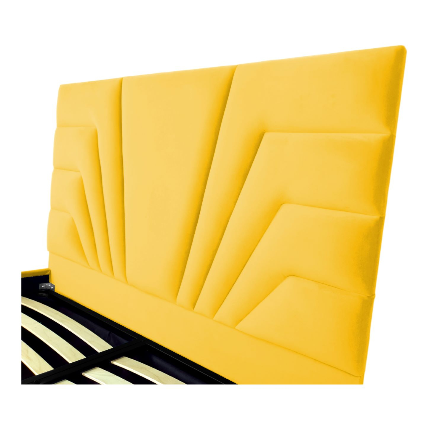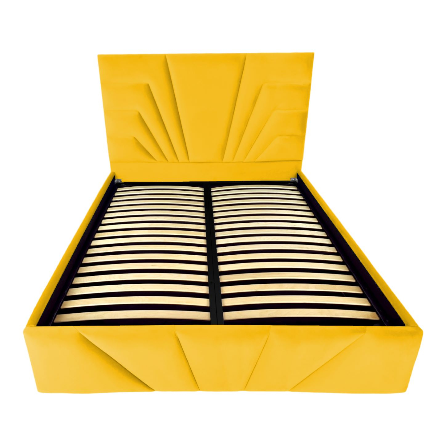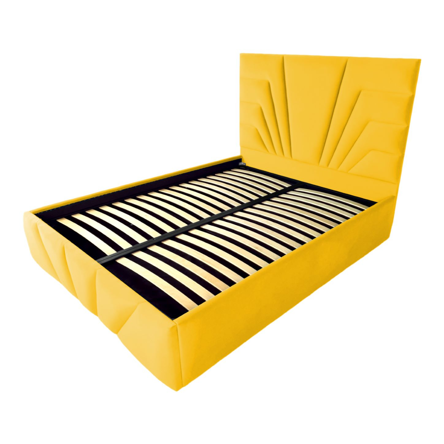 Pat tapitat Eva ,120x200cm,somiera metalica rabatabila,spatiu depozitare,galben