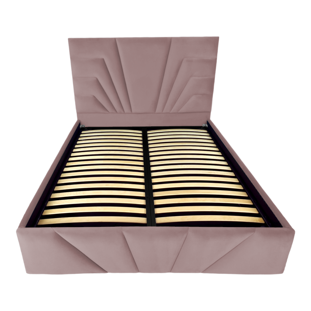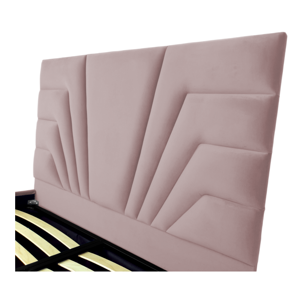 Pat tapitat Eva ,120x200cm,somiera metalica rabatabila,spatiu depozitare,roz prafuit