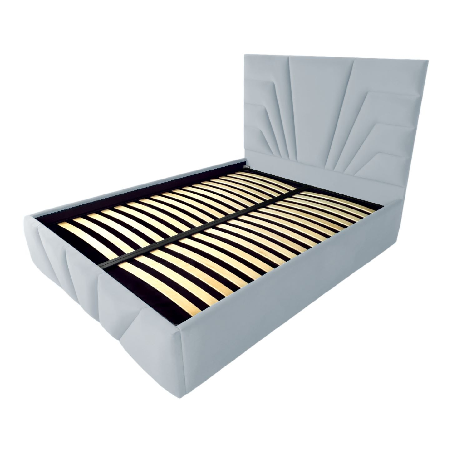 Pat tapitat Eva ,200x200cm,somiera metalica rabatabila,spatiu depozitare,gri deschis