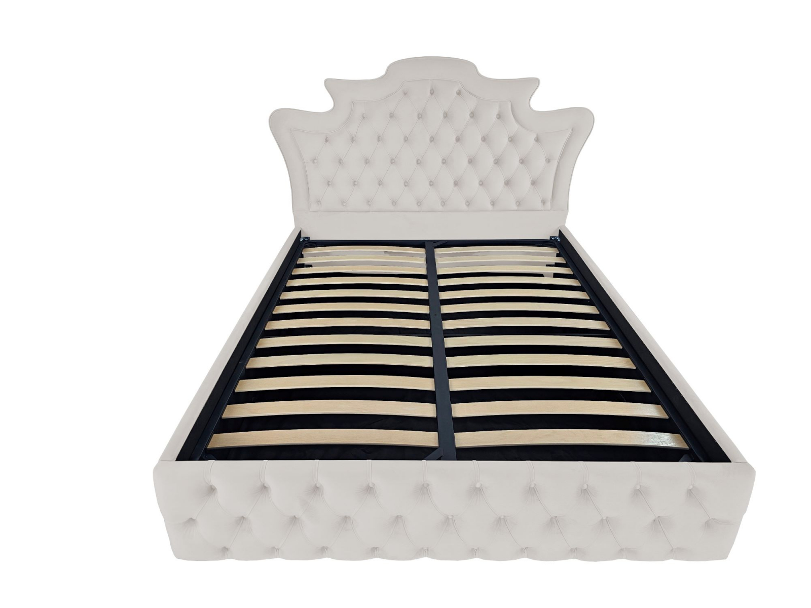 Pat tapitat Giulia ,120x200cm,somiera metalica rabatabila,spatiu depozitare,crem prafuit