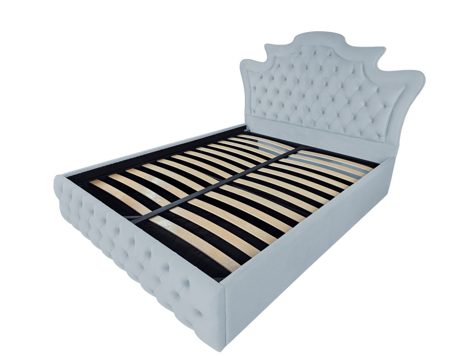 Pat tapitat Giulia ,200x200cm,somiera metalica rabatabila,spatiu depozitare,gri deschis