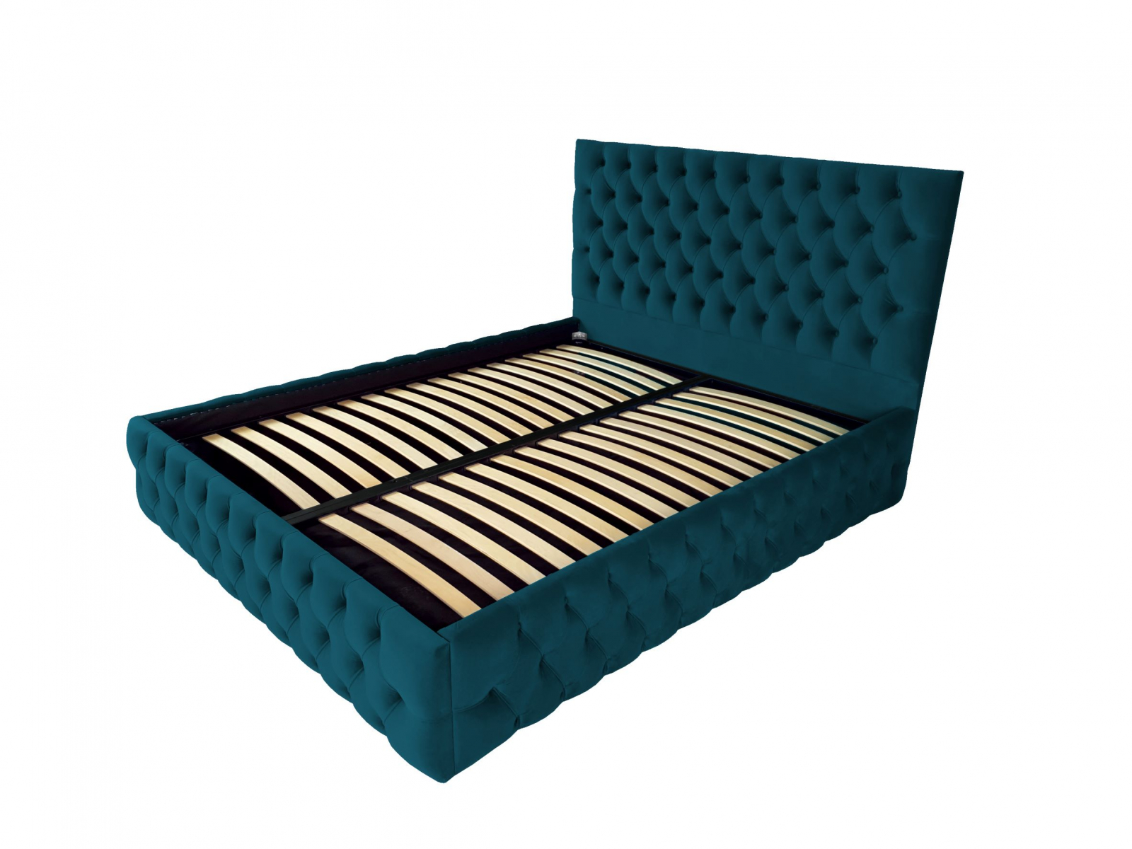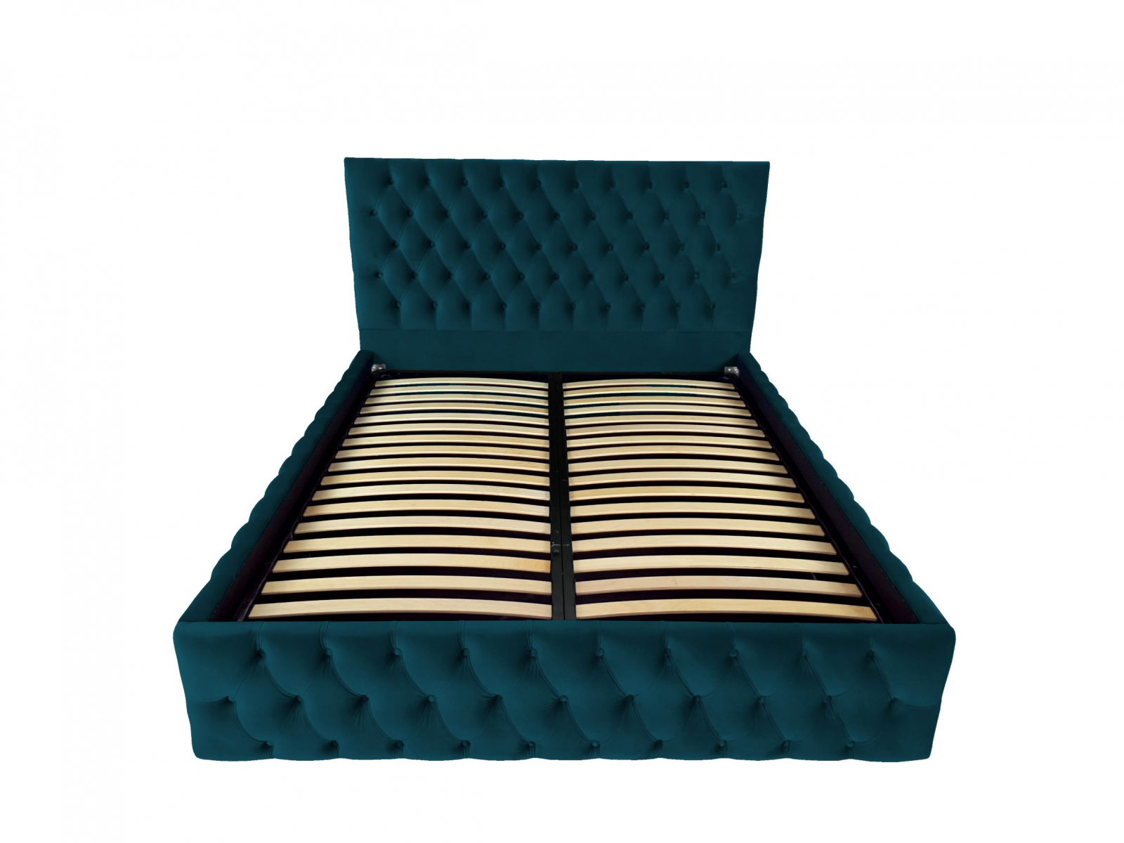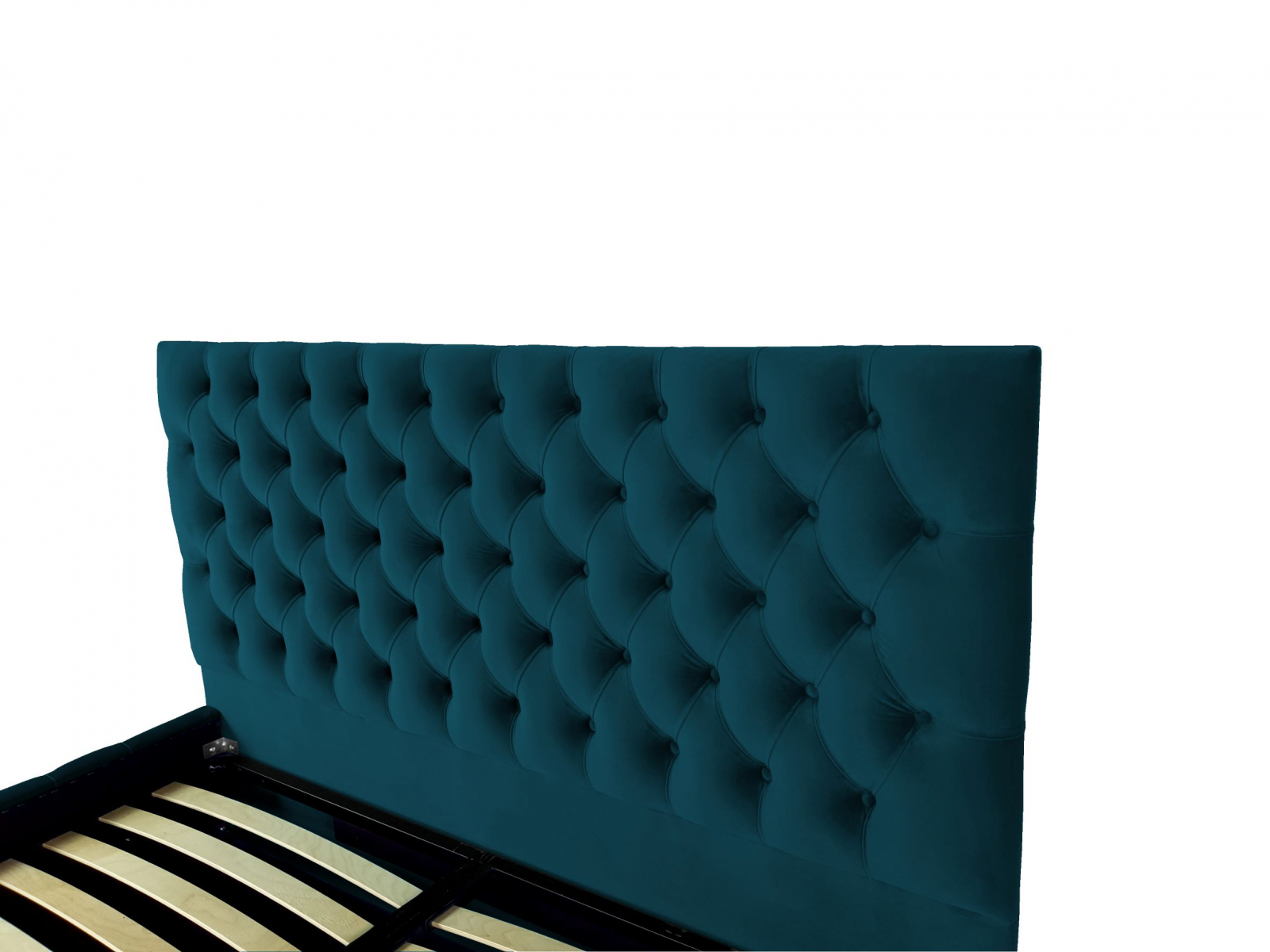 Veti fi captivat de aspectul sau unic și elegant. Rama patului este acoperita cu o tesatura moale catifelata. Un model de pat in stilul Chesterfield, tapitat in catifele moi si culori vibrante, perfect pentru un dormitor elegant. Ideal pentru saltele de 120x200 cm (saltea neinclusa). Este livrat cu somiera rabatabila cu spatiu pentru depozitare sub saltea.