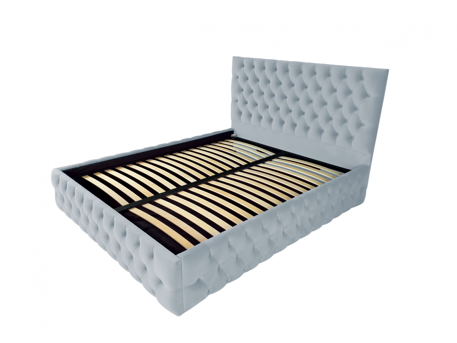 Pat tapitat Kirra Select ,200x200cm,somiera metalica rabatabila,spatiu depozitare,gri deschis