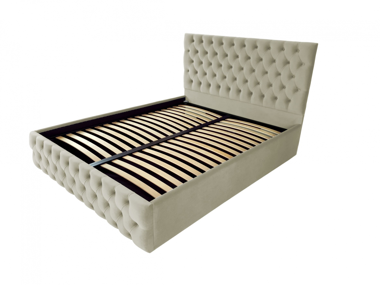 Pat tapitat Kirra -Produs in Romania. Veti fi captivat de aspectul sau unic și elegant. Rama patului este acoperita cu o tesatura moale catifelata. Un model de pat in stilul Chesterfield, tapitat in catifele moi si culori vibrante, perfect pentru un dormitor elegant. Ideal pentru saltele de 180x200 cm (saltea neinclusa). Este livrat cu somiera rabatabila cu spatiu pentru depozitare sub saltea.Se poate executa si pe alte culori.