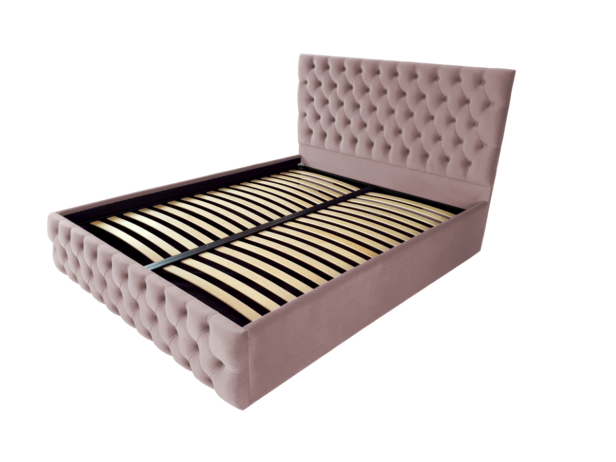 Pat tapitat Kirra -Produs in Romania. Veti fi captivat de aspectul sau unic și elegant. Rama patului este acoperita cu o tesatura moale catifelata. Un model de pat in stilul Chesterfield, tapitat in catifele moi si culori vibrante, perfect pentru un dormitor elegant. Ideal pentru saltele de 180x200 cm (saltea neinclusa). Este livrat cu somiera rabatabila cu spatiu pentru depozitare sub saltea.Se poate executa si pe alte culori.