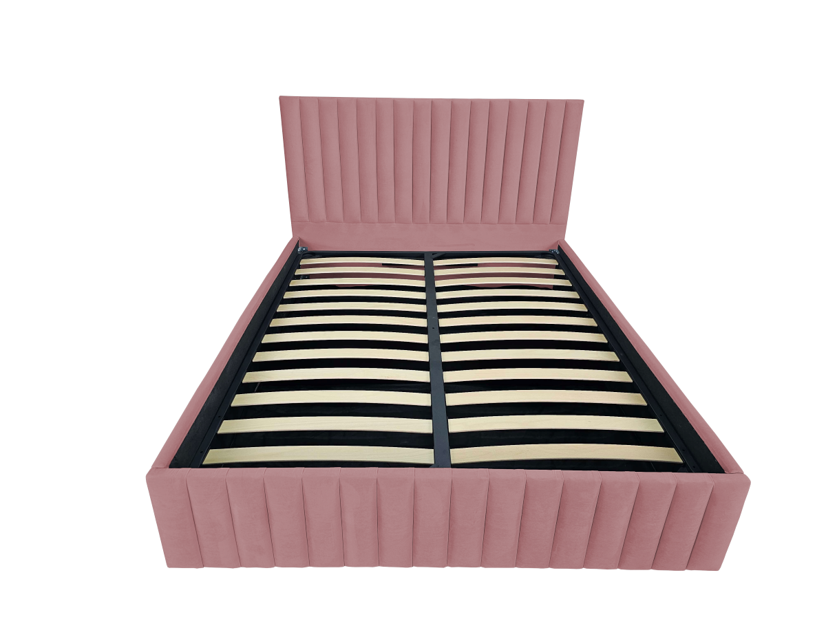 Pat tapitat Linnet ,120x200cm,somiera metalica rabatabila,spatiu depozitare,roz