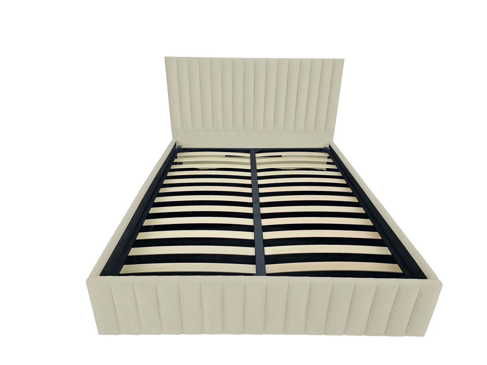 Pat tapitat Linnet ,120x200cm,somiera metalica rabatabila,spatiu depozitare,bej nisip