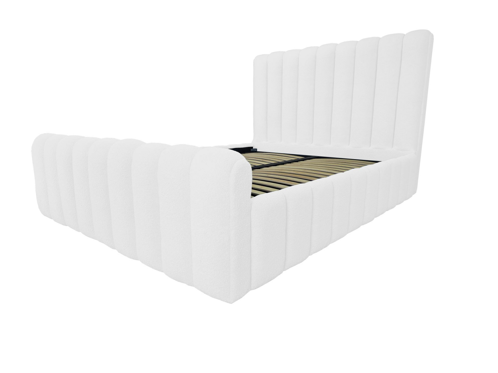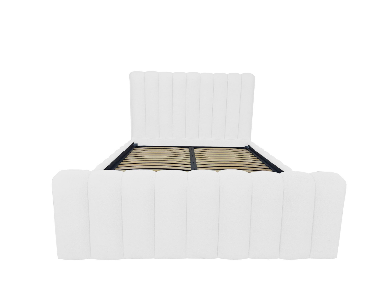 Pat tapitat Loft ,200x200cm,somiera metalica rabatabila,spatiu depozitare,alb