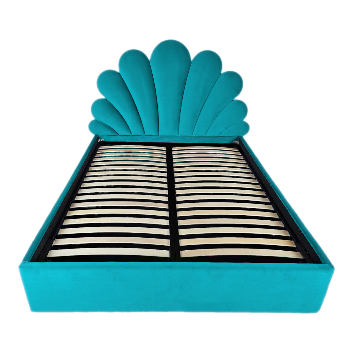 Pat tapitat Lotus ,120x200cm,somiera metalica rabatabila,spatiu depozitare,albastru azur