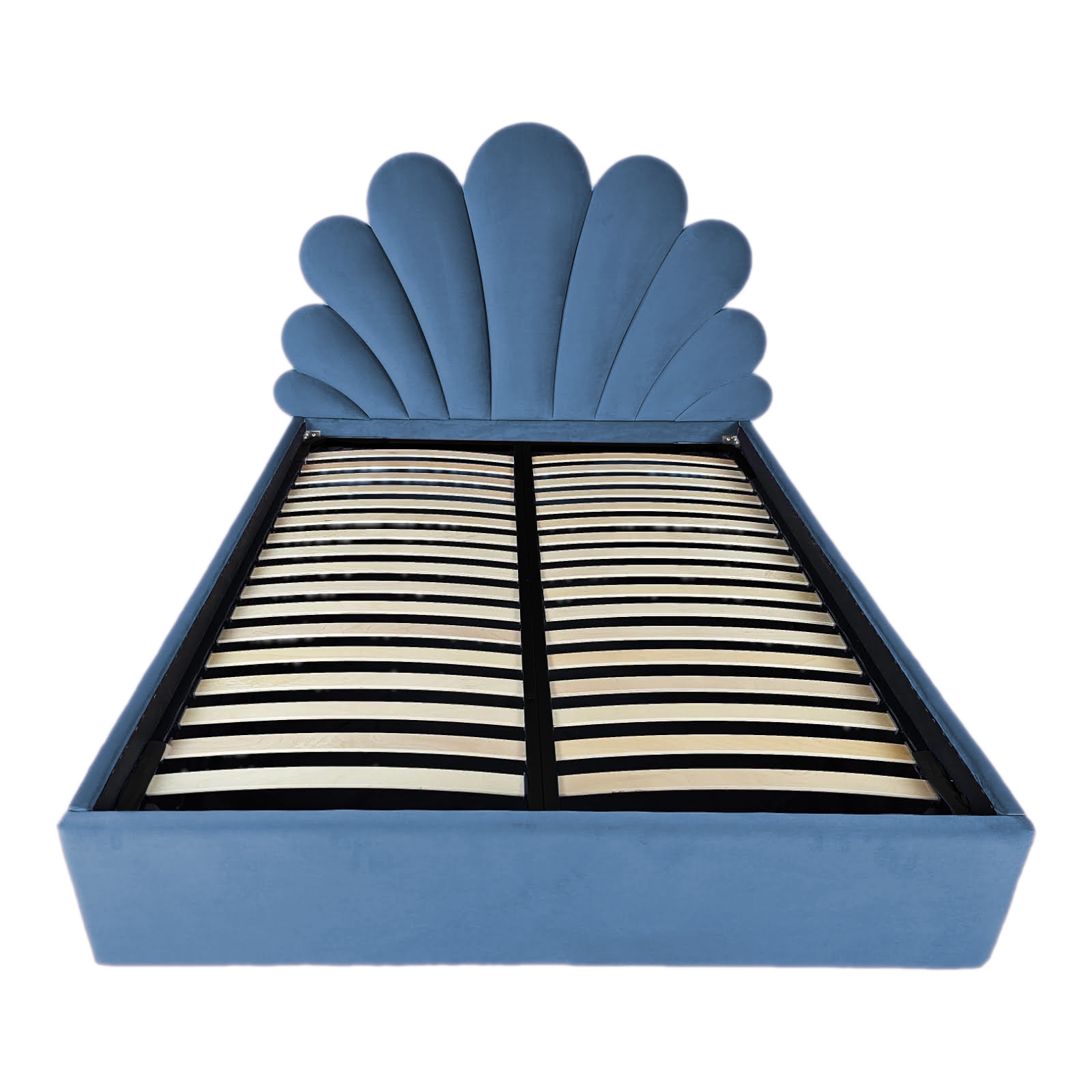 Pat tapitat Lotus ,120x200cm,somiera metalica rabatabila,spatiu depozitare,albastru pastel