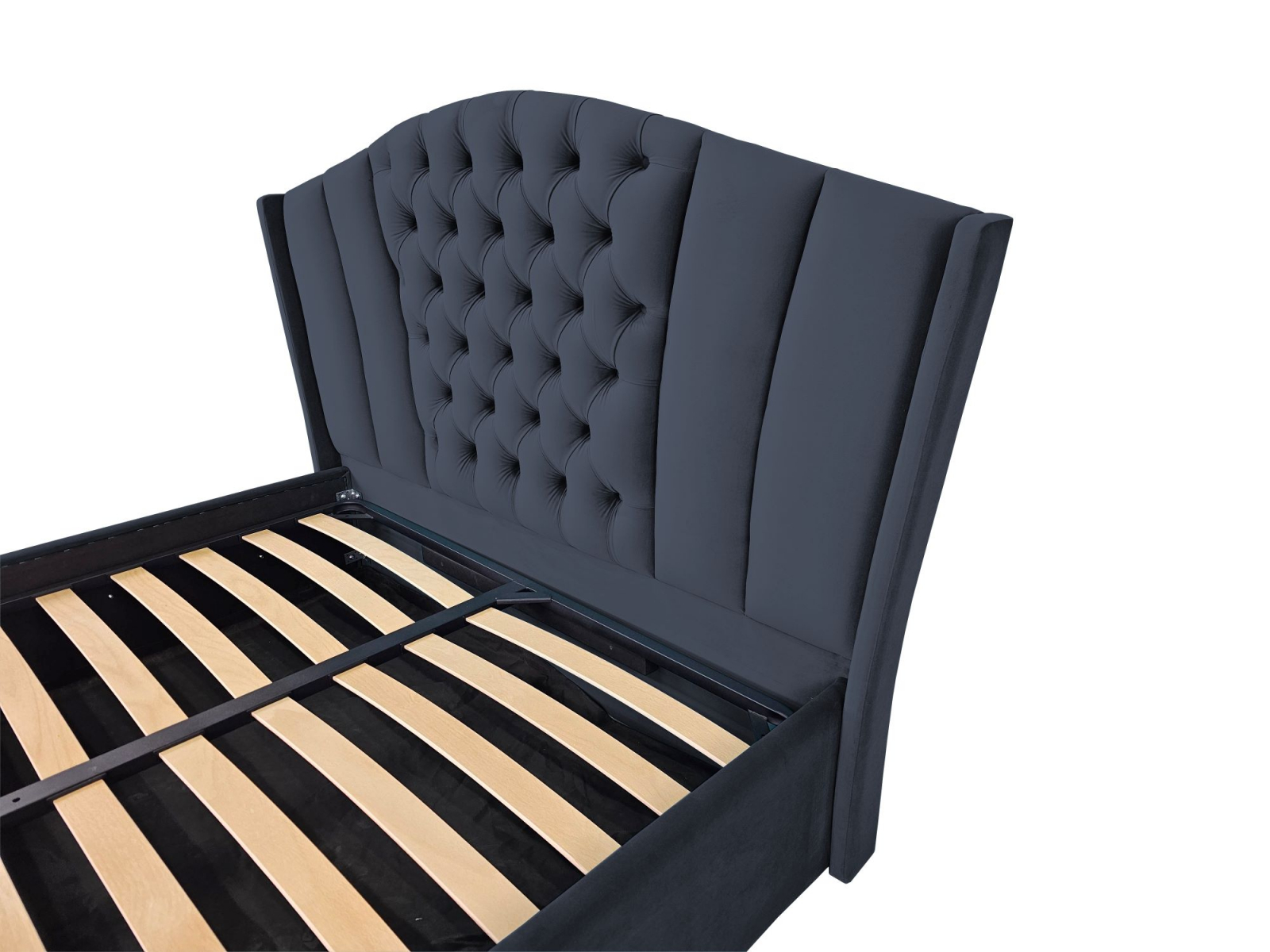 Pat tapitat Majestic ,120x200cm,somiera metalica rabatabila,spatiu depozitare,gri antracit