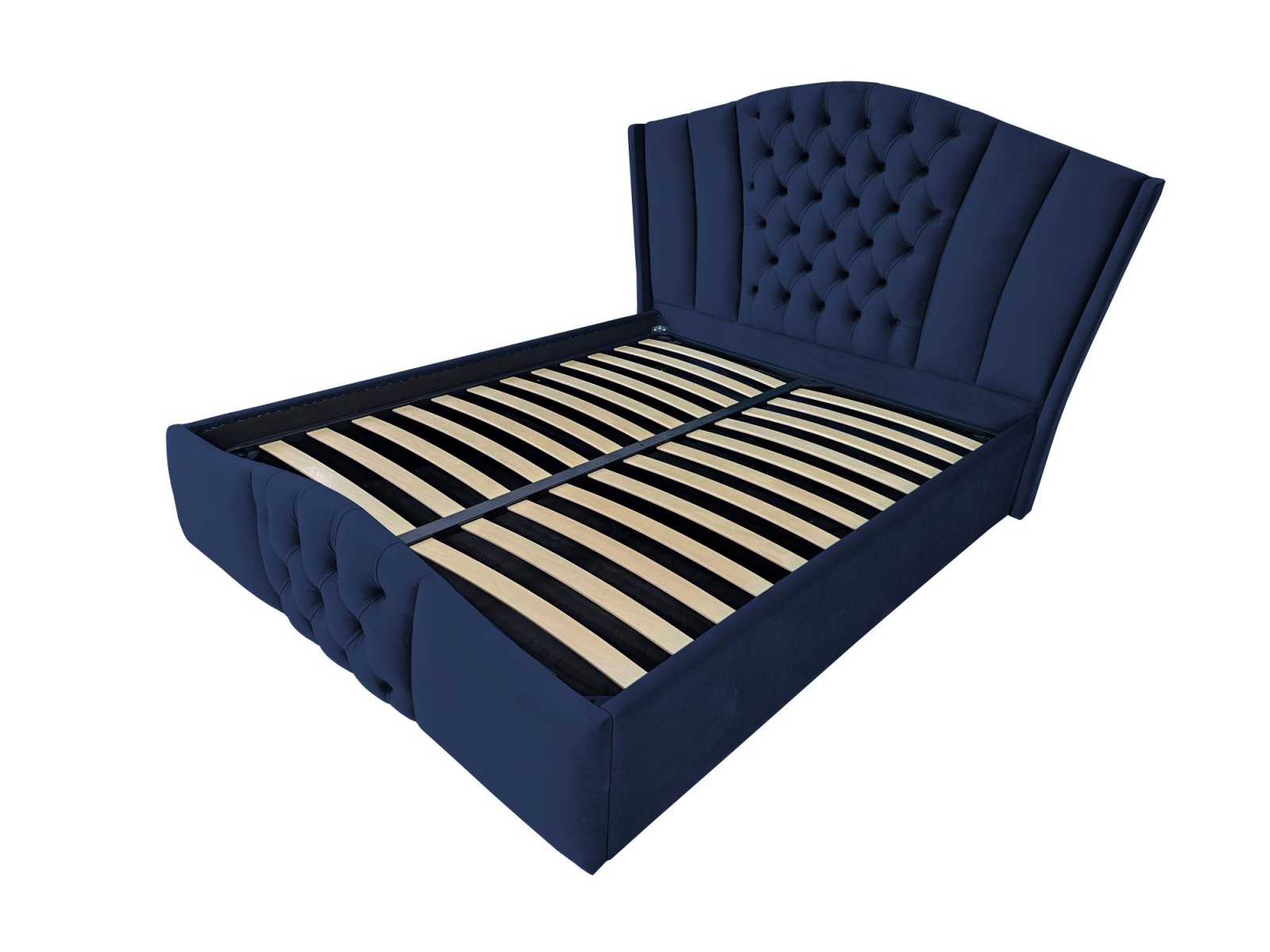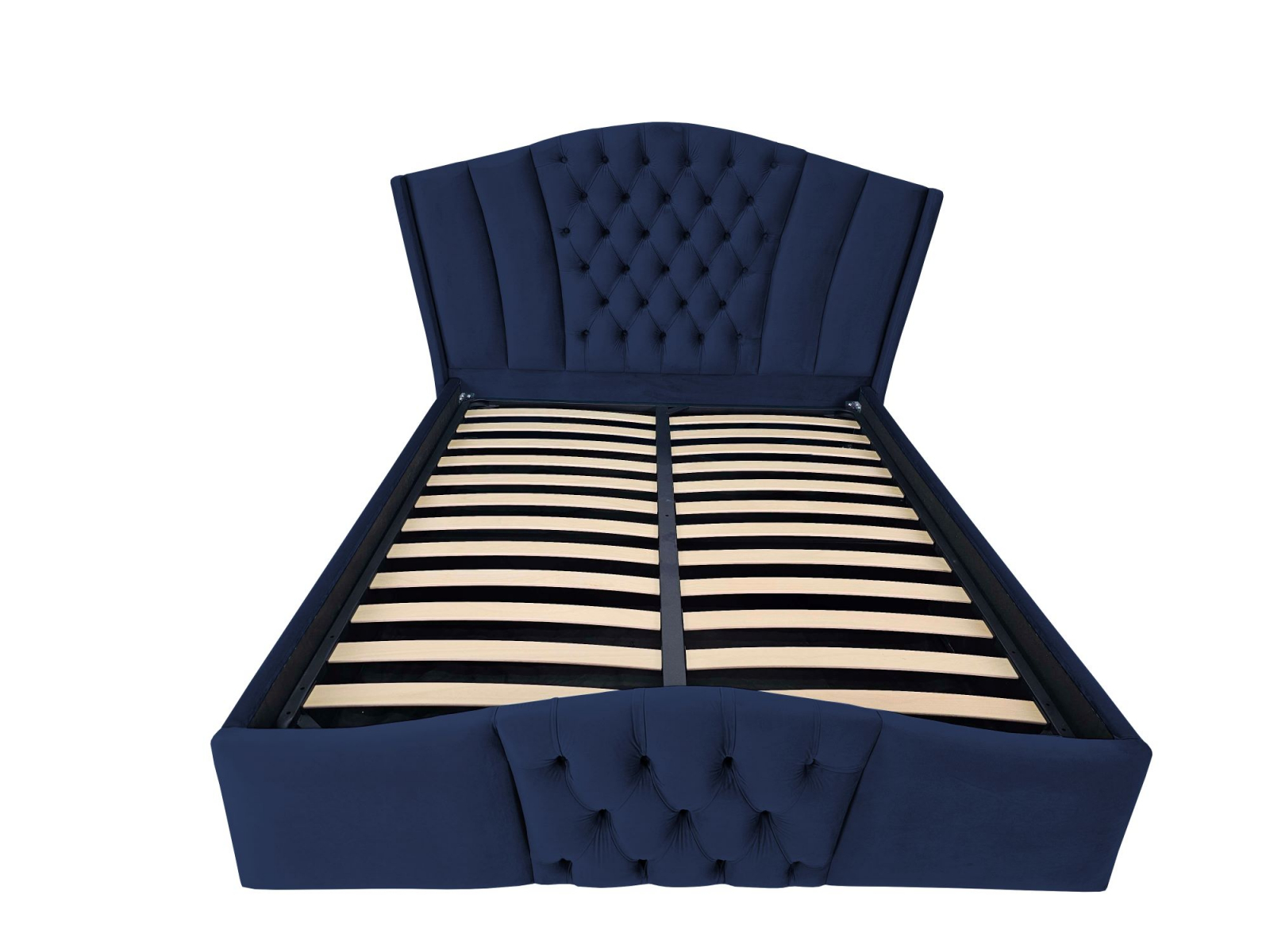 Pat tapitat Majestic ,120x200cm,somiera metalica rabatabila,spatiu depozitare,bleumarin