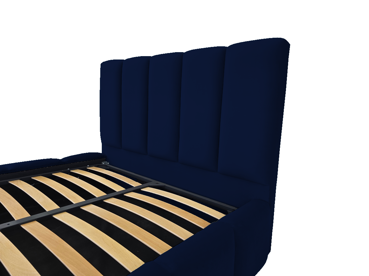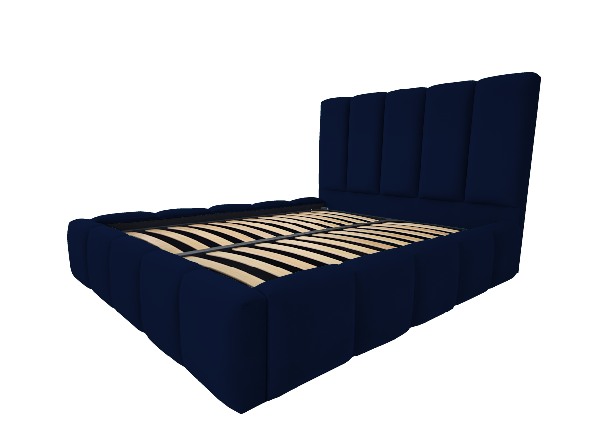 Pat tapitat Nexia ,140x200cm,somiera metalica rabatabila,spatiu depozitare,bleumarin