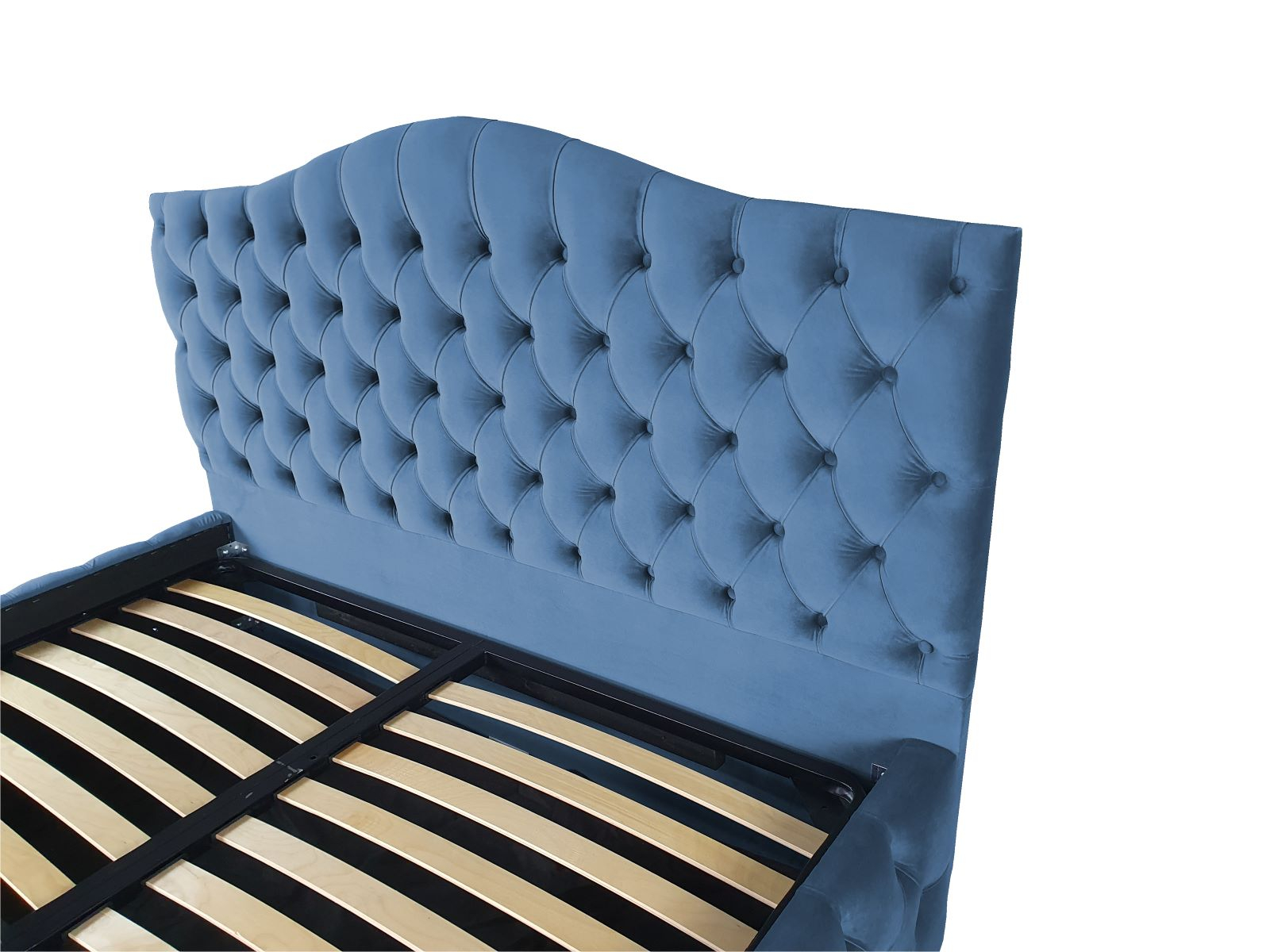 Veti fi captivat de aspectul sau unic și elegant. Rama patului este acoperita cu o tesatura moale catifelata. Un model de pat in stilul Chesterfield, tapitat in catifele moi si culori vibrante, perfect pentru un dormitor elegant. Este livrat cu somiera rabatabila cu spatiu pentru depozitare sub saltea.