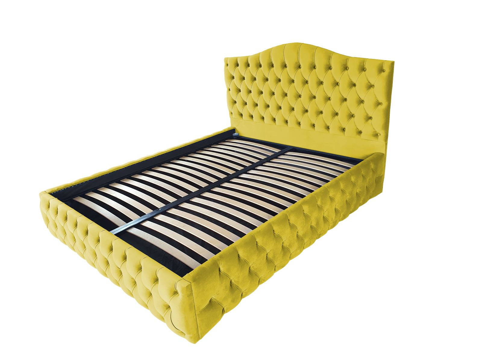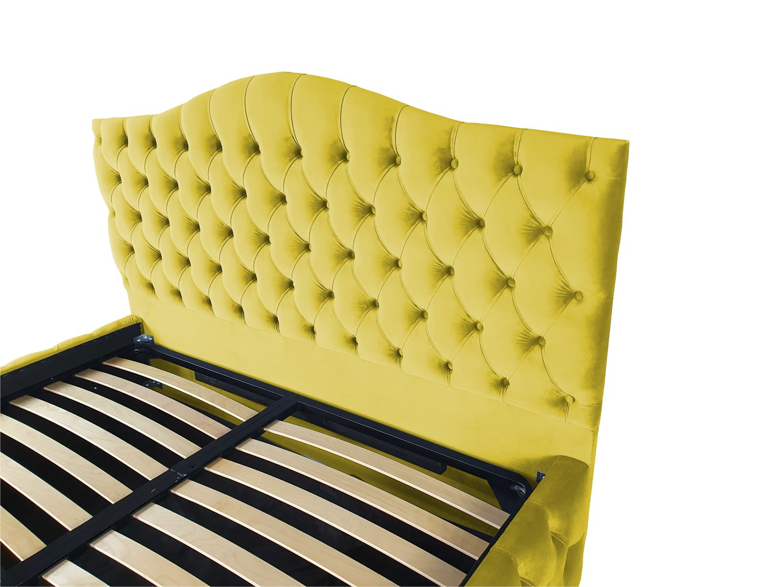 Veti fi captivat de aspectul sau unic și elegant. Rama patului este acoperita cu o tesatura moale catifelata. Un model de pat in stilul Chesterfield, tapitat in catifele moi si culori vibrante, perfect pentru un dormitor elegant. Este livrat cu somiera rabatabila cu spatiu pentru depozitare sub saltea.