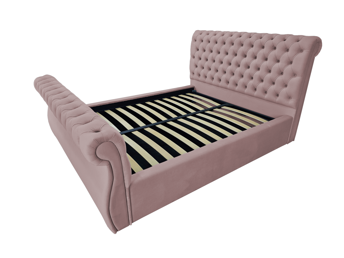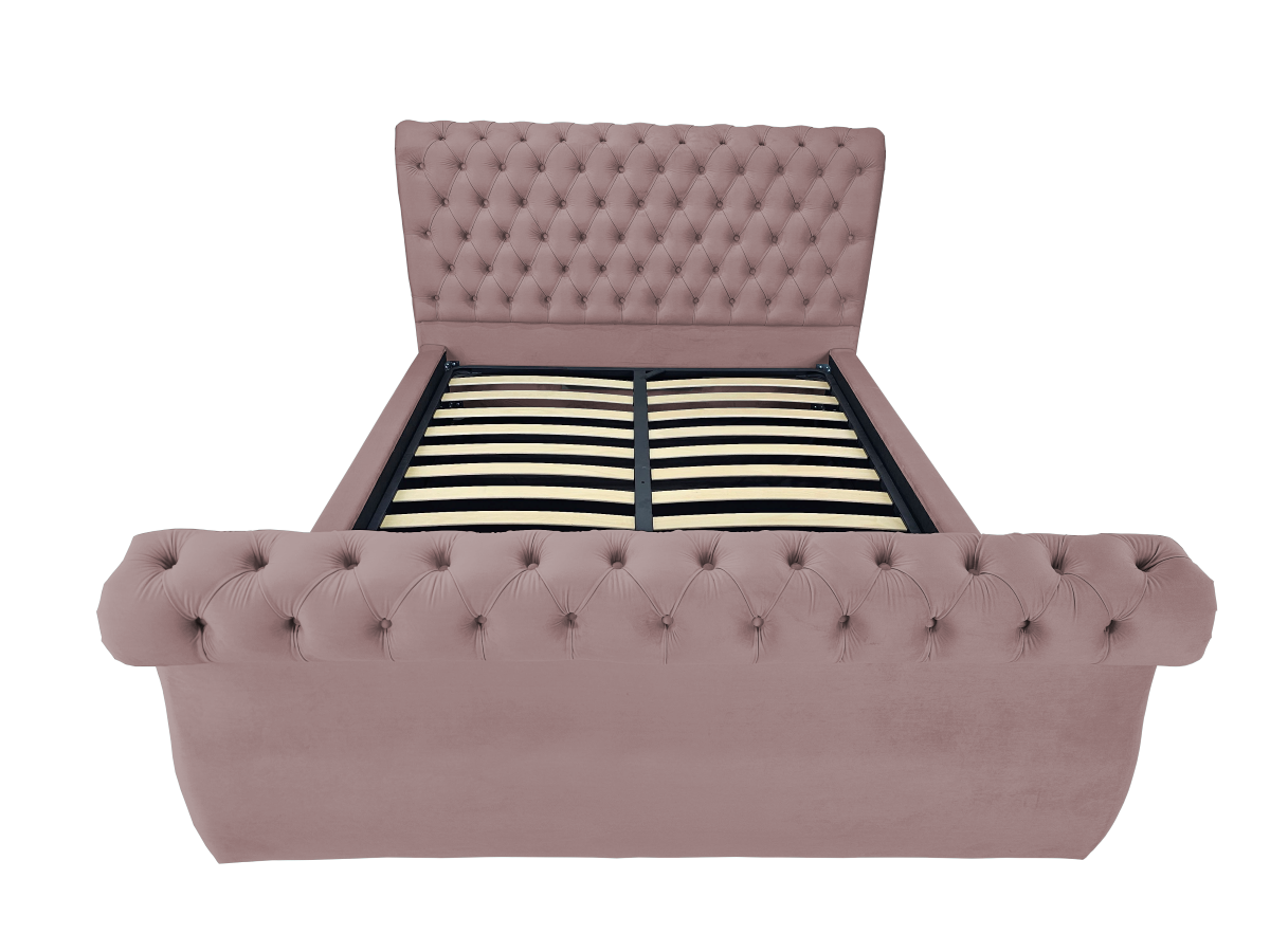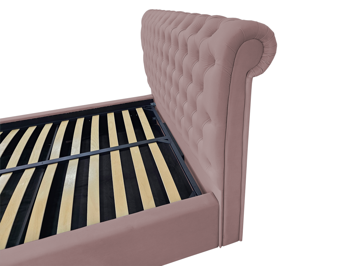 Pat tapitat Nobles ,120x200cm,somiera metalica rabatabila,spatiu depozitare,roz prafuit