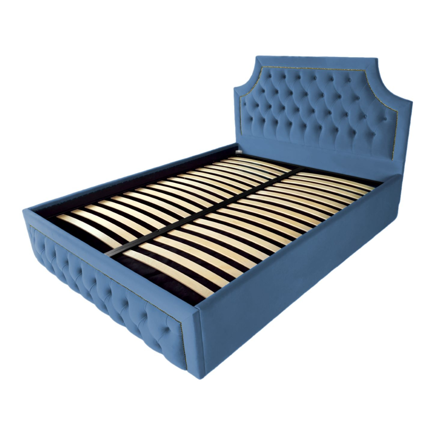 Pat tapitat Oslo ,120x200cm,somiera metalica rabatabila,spatiu depozitare,albastru pastel