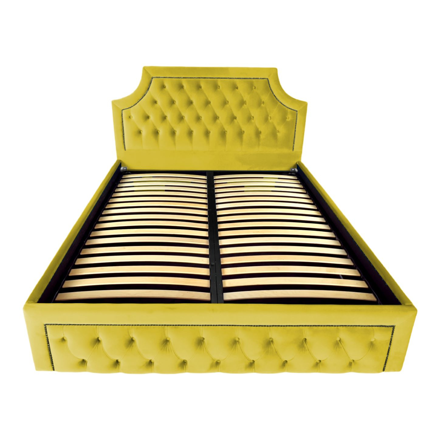 Pat tapitat Oslo ,120x200cm,somiera metalica rabatabila,spatiu depozitare,mustar