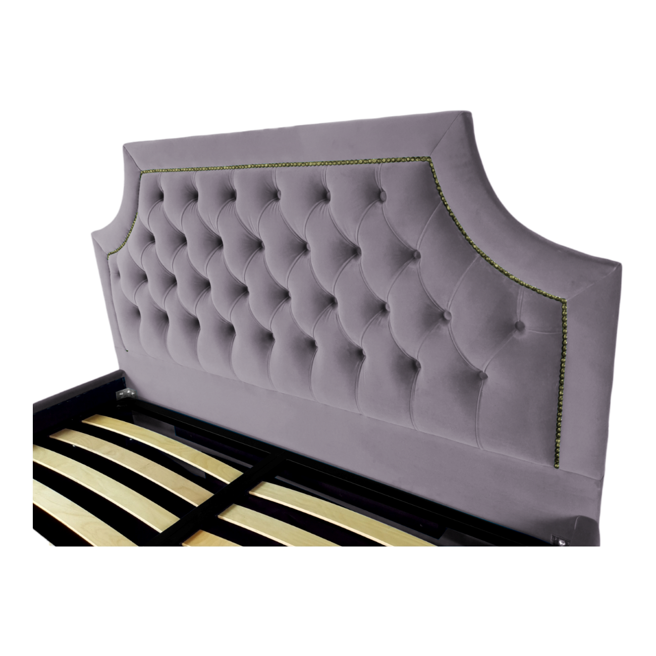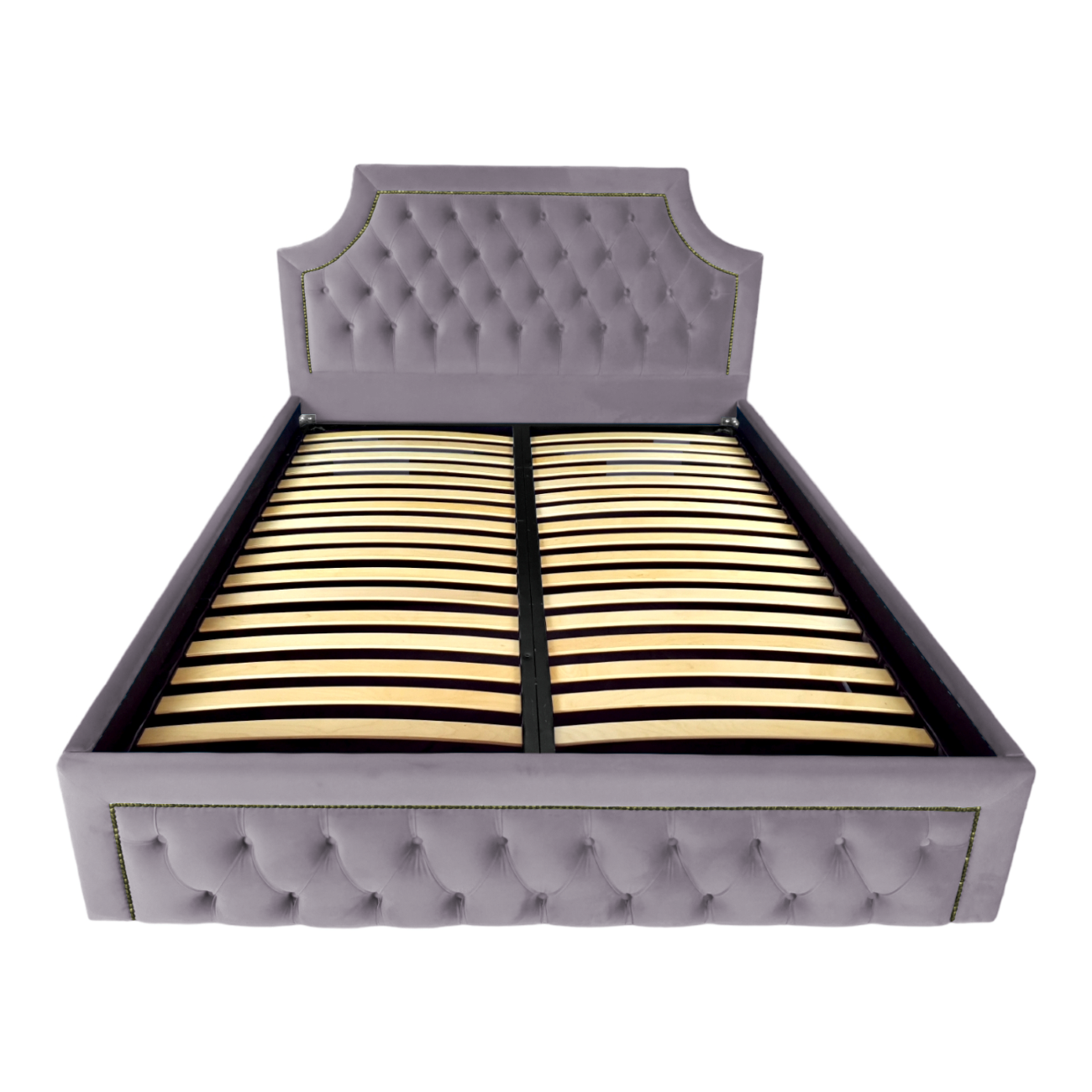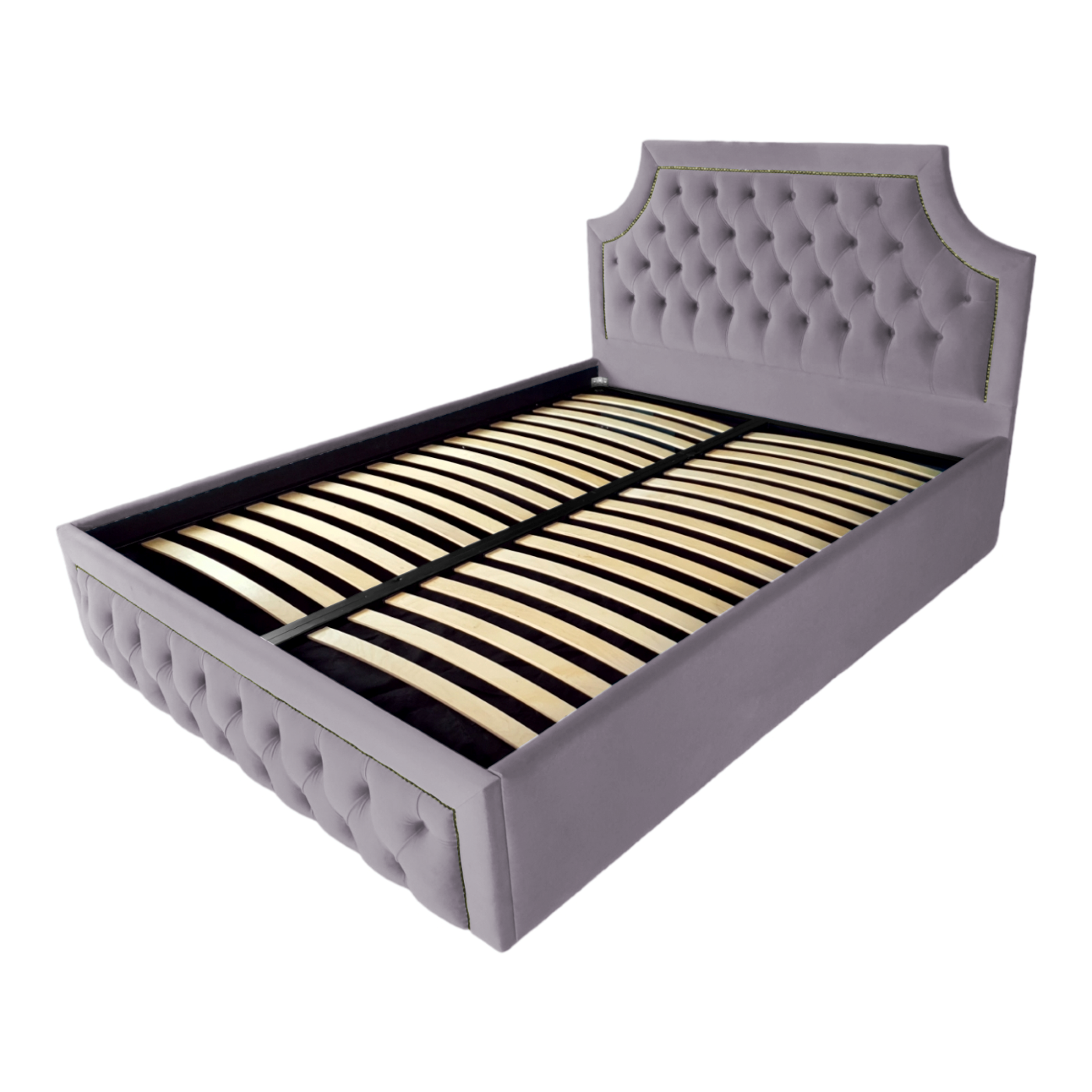 Pat tapitat Oslo ,120x200cm,somiera metalica rabatabila,spatiu depozitare,lila