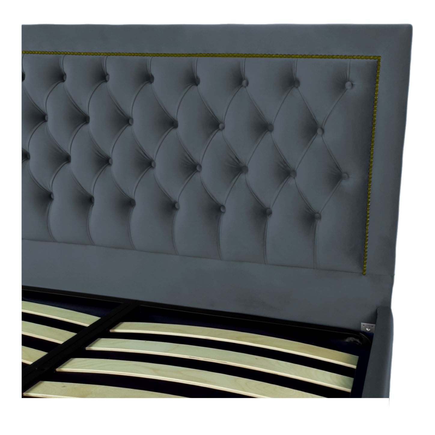 Pat tapitat Roma ,120x200cm,somiera metalica rabatabila,spatiu depozitare,gri