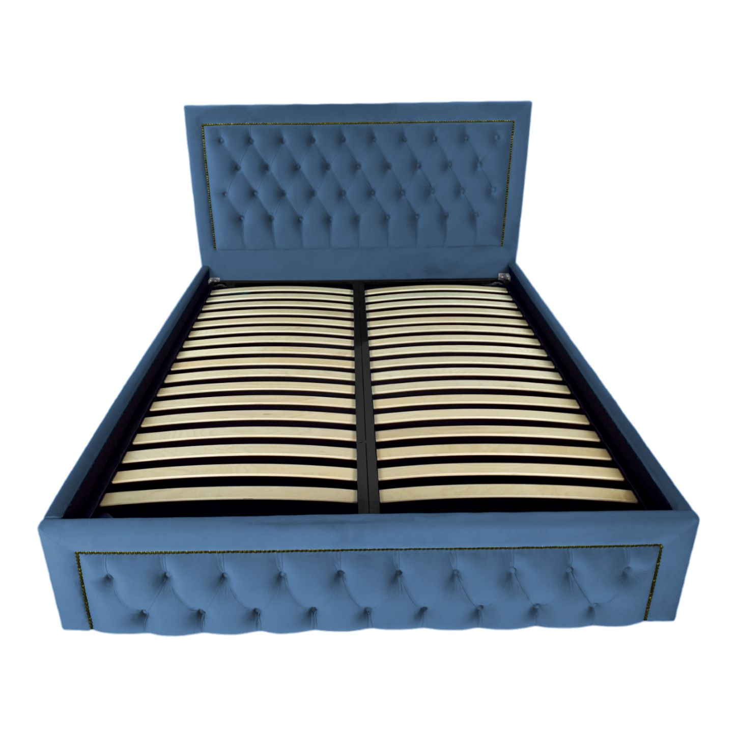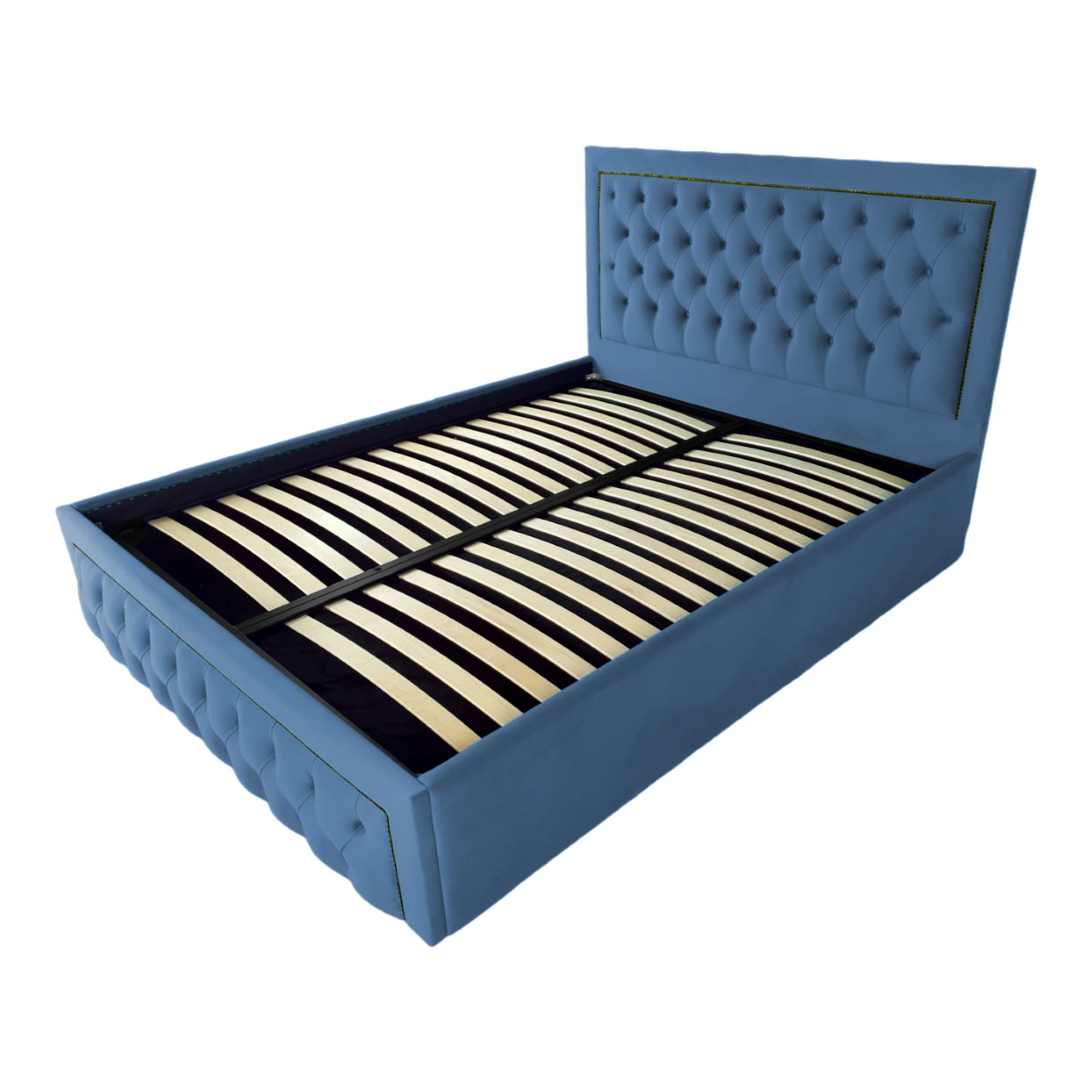 Pat tapitat Roma ,120x200cm,somiera metalica rabatabila,spatiu depozitare,albastru pastel