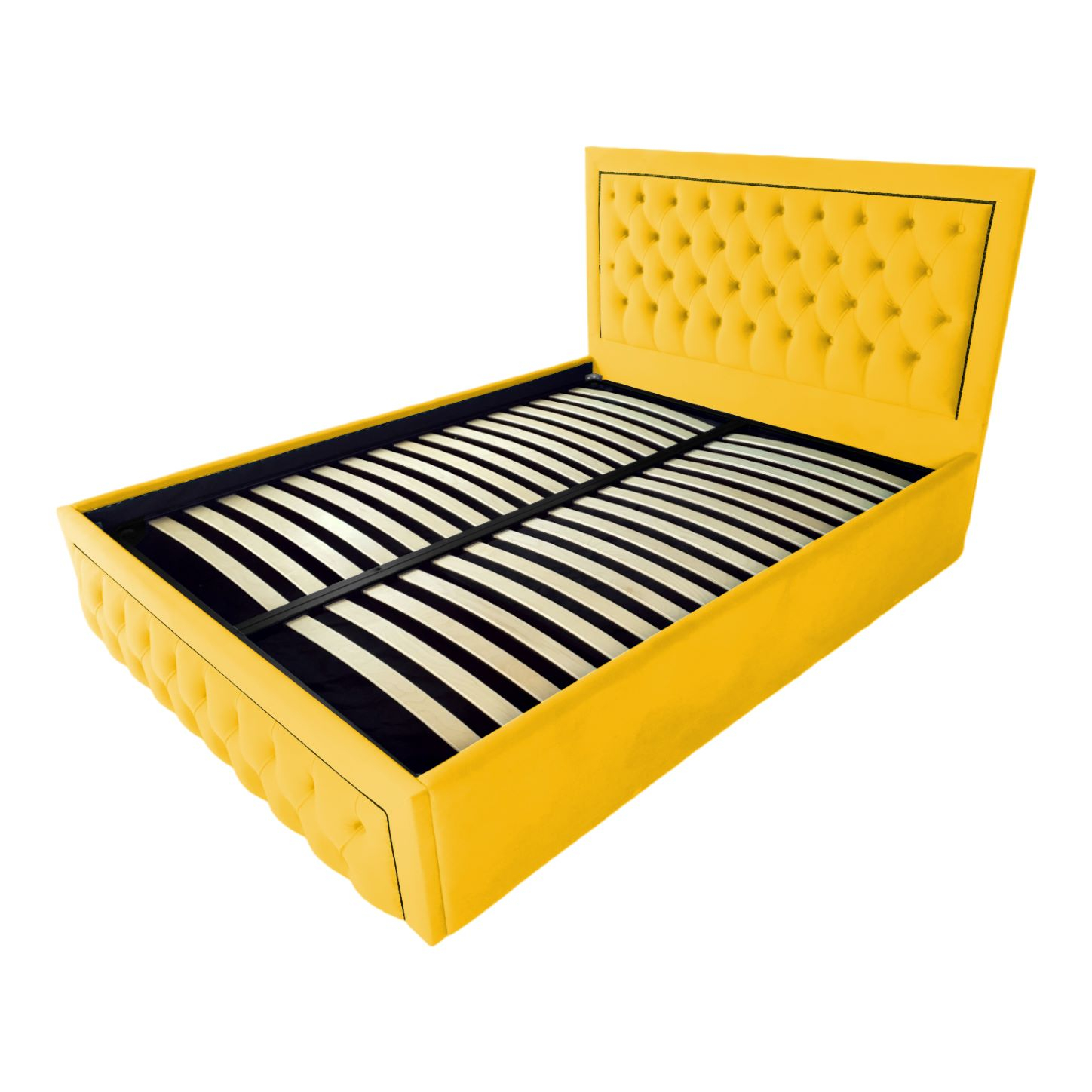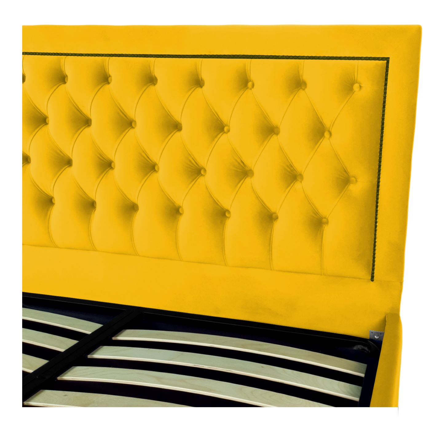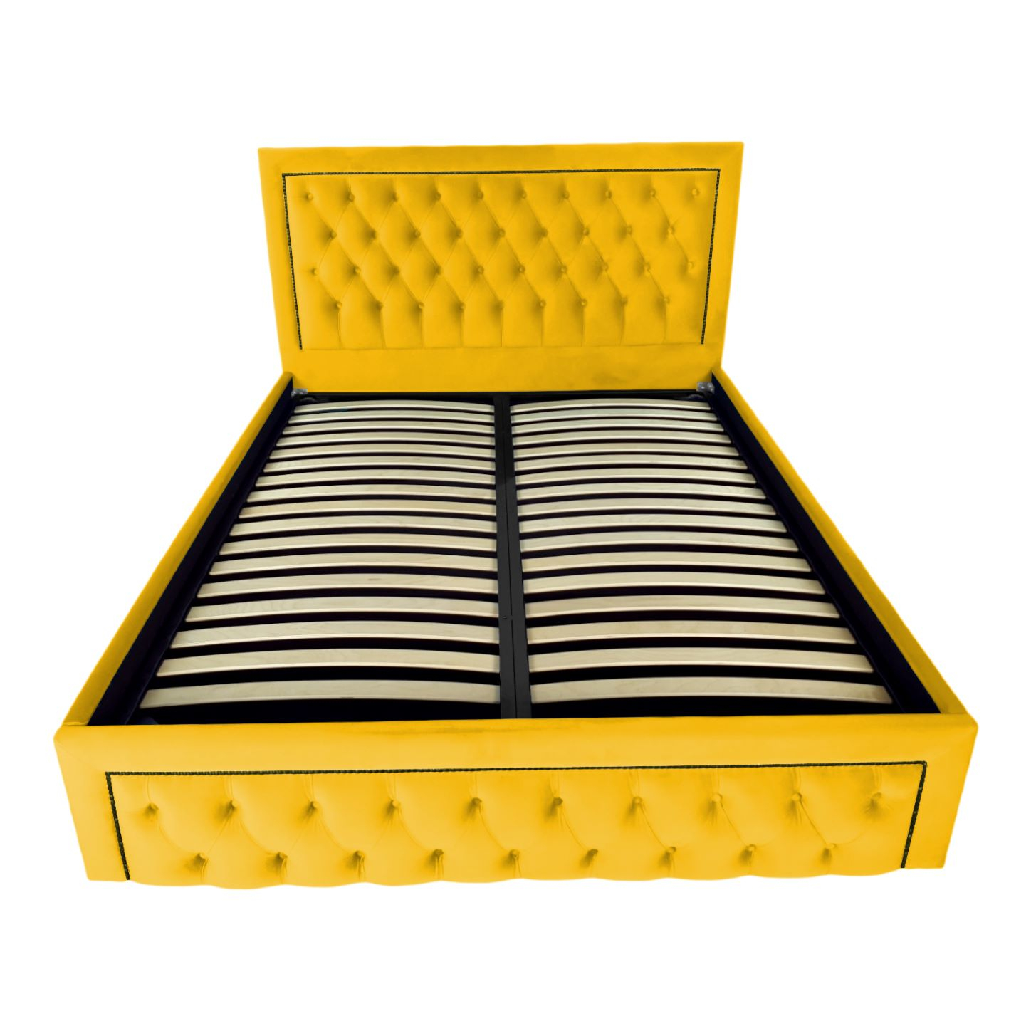 Pat tapitat Roma ,120x200cm,somiera metalica rabatabila,spatiu depozitare,galben