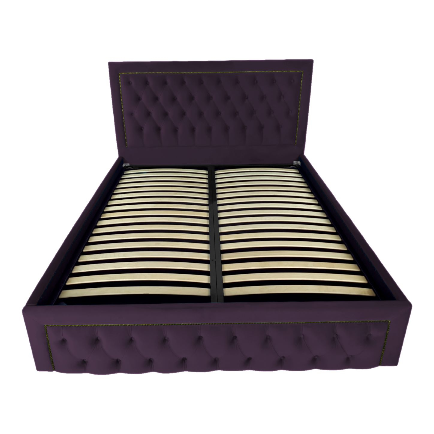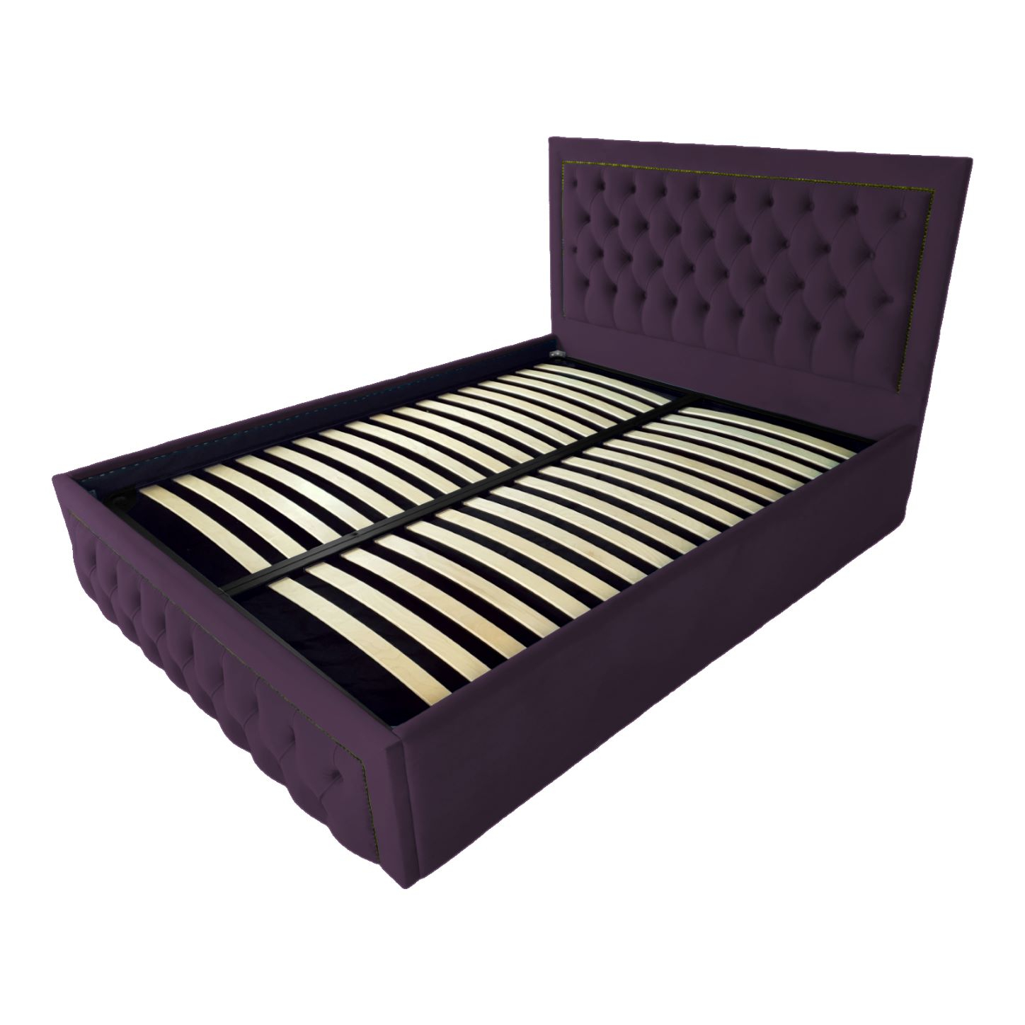 Pat tapitat Roma ,120x200cm,somiera metalica rabatabila,spatiu depozitare,mov
