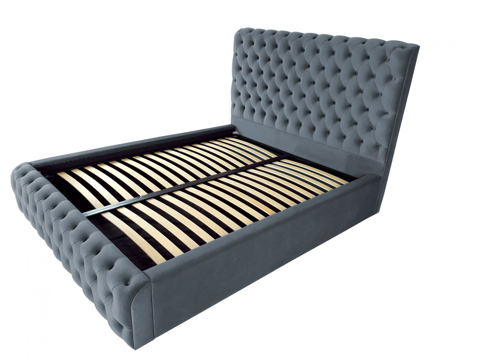 Pat tapitat Ruby ,120x200cm,somiera metalica rabatabila,spatiu depozitare,gri