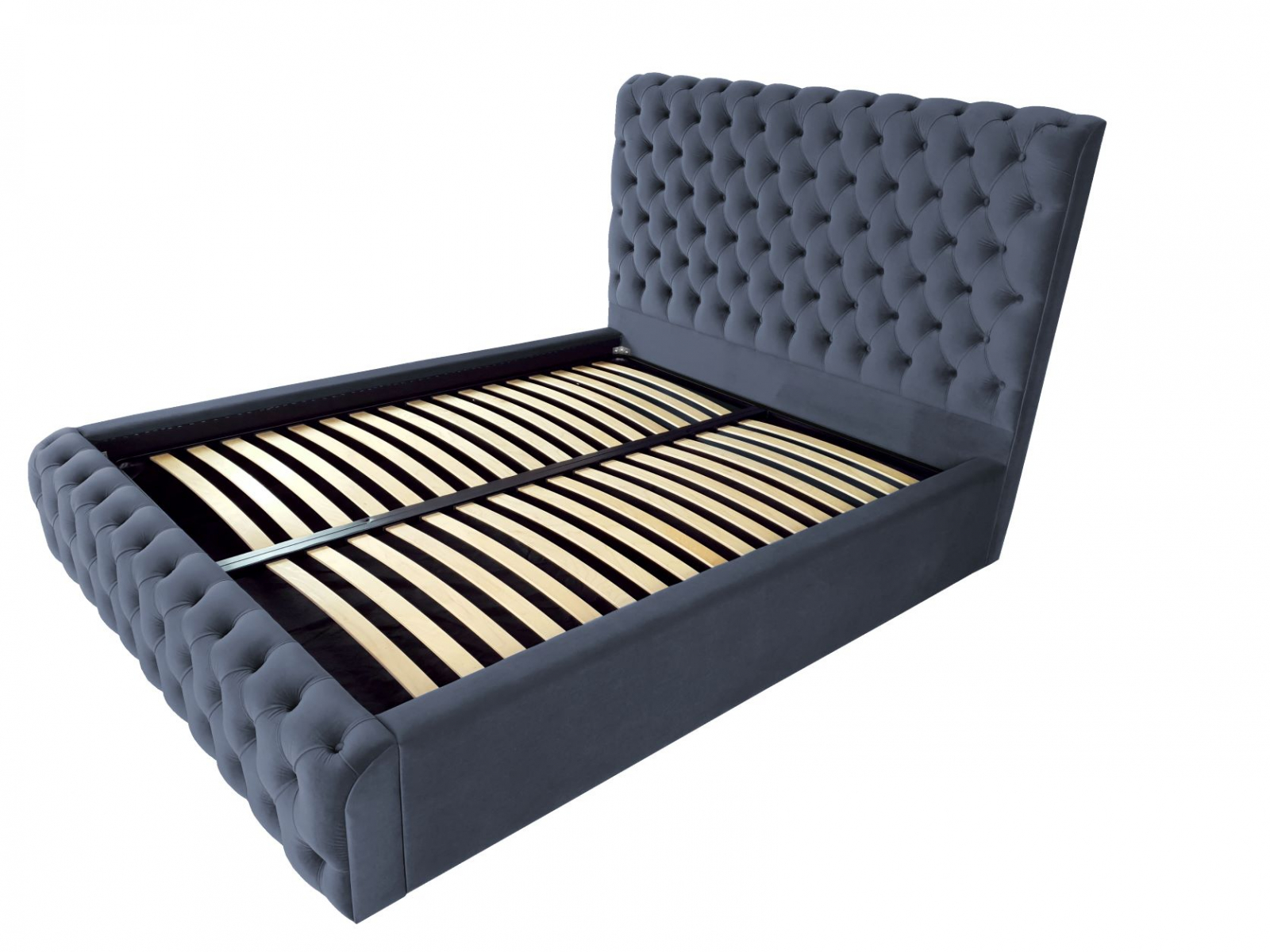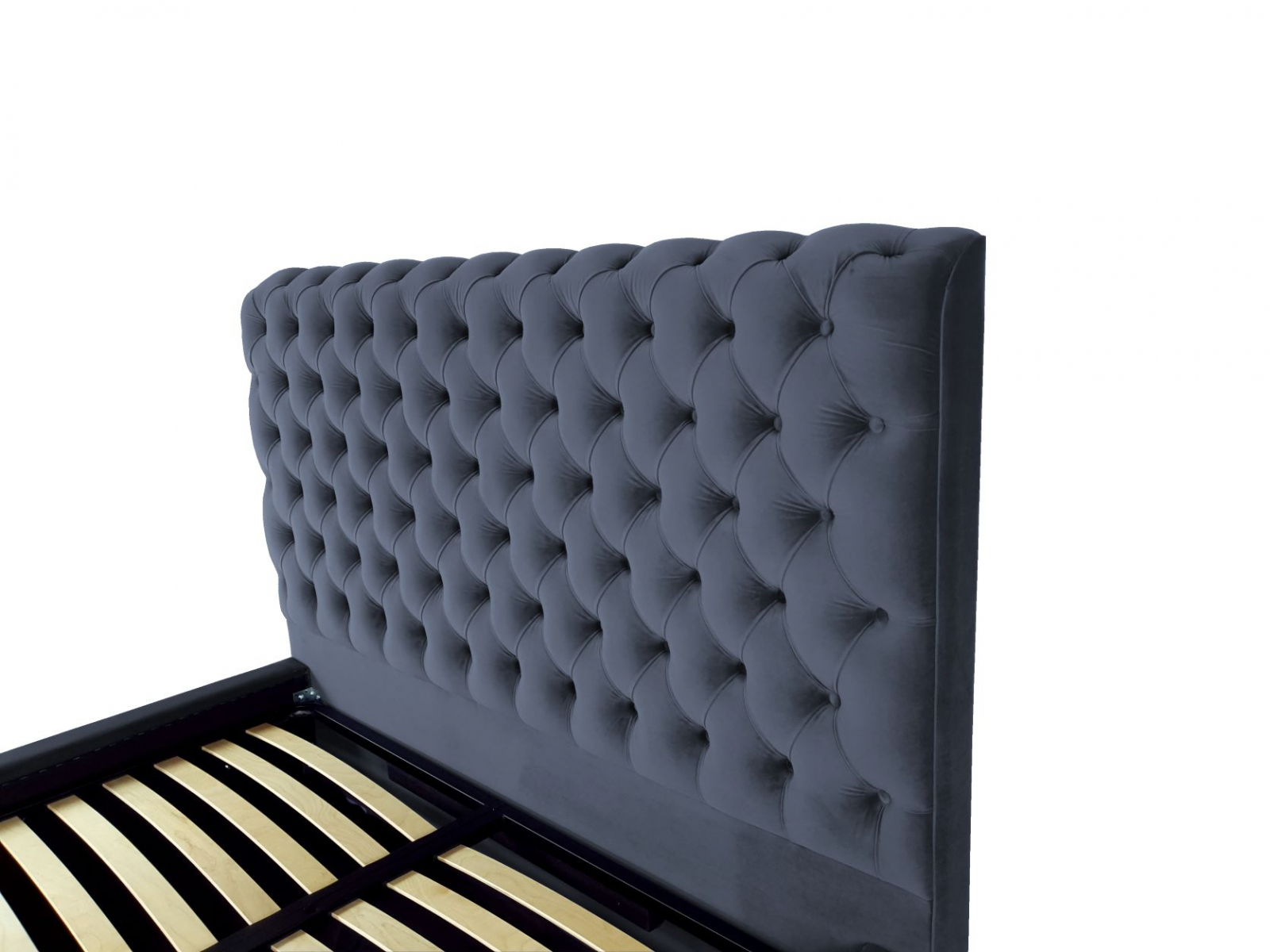 Pat tapitat Ruby ,120x200cm,somiera metalica rabatabila,spatiu depozitare,gri antracit