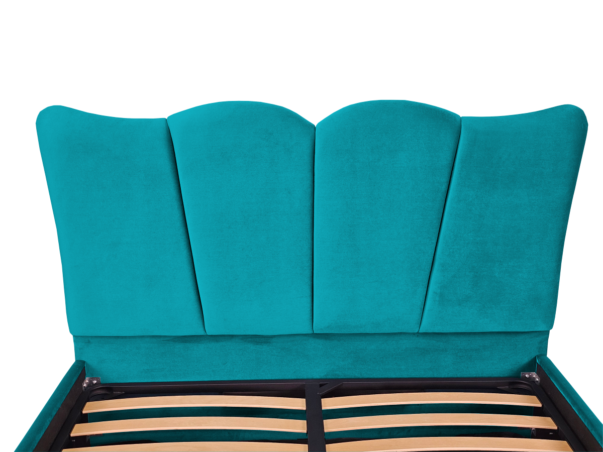 Pat tapitat Serena ,120x200cm,somiera metalica rabatabila,spatiu depozitare,albastru azur