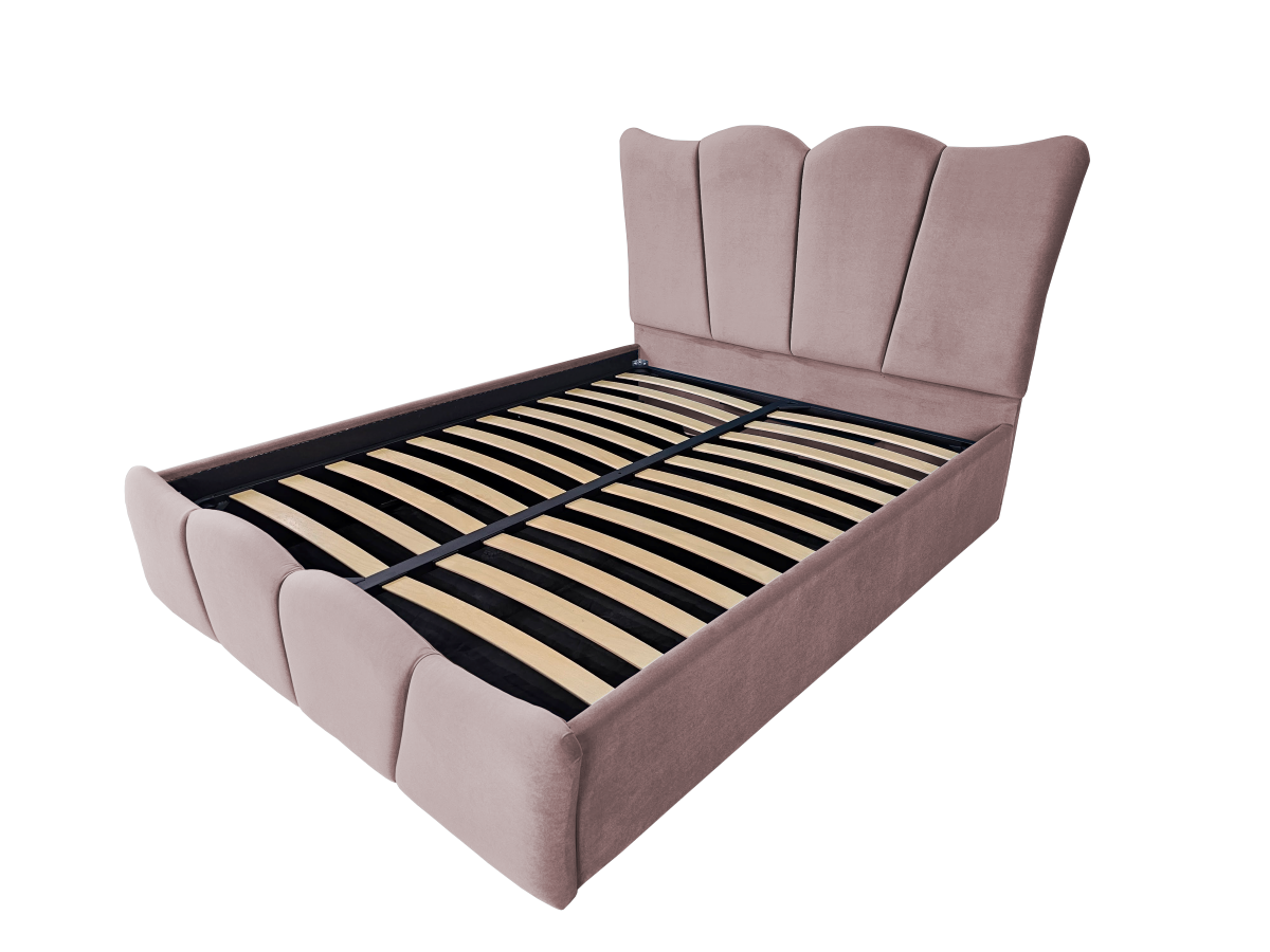 Pat tapitat Serena ,120x200cm,somiera metalica rabatabila,spatiu depozitare,roz prafuit